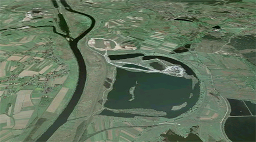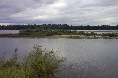 Looking east to west over river Wisła near Jankowice, the village in the background (50°01’N, 19°26’E) with its reservoir. Picture: Czary.