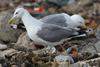 adult cachinnans: July In 2006, Ronald Klein & Grzegorz Neubauer published an article in Vogelwelt about Larus cachinnans and L. michahellis. The original article (PDF) is in German, translated by Mars Muusse. "We" in the text below refers to the original authors. If any (translation) errors occur in this text, please let me know and mail to marsmuusseatgmaildotcom. BACK TO PART 1: METHODS & RESULTS Influxes of Caspian Gulls Larus cachinnans and Yellow-legged Gulls L. michahellis into northern Central Europe – origin, causes, course and trend. BY: R. Klein & G. Neubauer. 4. DiscussionThe regular occurrence of Steppe Gulls in Central and Western Europe was unknown until recently. Indeed already in the 1950s there were some Western European recoveries of birds ringed as pullus at the Black Sea coast, but these were regarded as exceptions. By that time, birds from this region were considered merely “white-headed gulls” or just a subspecies of Herring Gull, and consequently this issue received little attention. Only after systematic analysis of ring readings (Klein 1994) showed that Caspian Gull is a regular visitor on the Baltic Sea, and only after these ringed birds were used to worked out field identification criteria to distinguish it from other large gulls (Small & Gruber 1997, Jonsson 1998), there was rapid and essentially simultaneously flood of observations from most of Europe (Gruber 1996; Jonsson 1996; Garner & Quinn 1997; Groot Koerkamp & Ebels 1997; Knolle et al. 1997; Rubini 1997). Nowadays, more observations of ringed gulls from the Ukraine are recorded in Finland (H. Koskinen, pers. comm.), Denmark (K.T. Pedersen pers. comm.), Holland (Wiegant & Steinhaus in 1997) and northern Italy (A. Talamelli pers. comm.); records published on the internet show field observations and photo’s of Caspian Gulls reaching Sicily, Norway and Ireland. It seems Caspian Gull can be considered potential visitor in most of Europe. It is worth noting that in some places in central European inland (e.g. Sachsen) concentrations of several thousand birds were registered, making Caspian Gull at certain times the most frequent local large white-headed gull (e.g. Hallfarth et al. 2005.). In a way, the spatial distribution of ring readings reflects the locations of qualified gull-enthusiasts and observers, however some facts are obvious. The following list of facts derived from a variety of (mostly non-citable) sources, primarily on internet, but also monthly, quarterly, and annual reports of various magazines like Limicola, Dutch Birding and Birding World and interviews and correspondences with gulls specialists from across Europe.