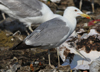 Late summer observations around the year 2000 made on landfills at the Baltic Sea by one of the authors, gave Ronald Klein the impression that the proportion of the Yellow-legged Gull had decreased compared with the 1990s. For instance, August/September 1995 daily maximum numbers were estimated to be 50 Caspian and 80-100 Yellow-legged Gulls (mostly 1CY birds) among about 5000 Herring Gulls, and these were no extraordinary figures. It has to be mentioned no systematic counts were conducted, because ring readings on large gulls always had priority. Apparently, five years later Caspian Gulls were recorded about twice as often as Yellow-legged Gull in late summer. Currently the feeding situation has deteriorated significantly and former figures are generally not achieved anymore. Since June 2005 it is not allowed anymore to landfill untreated domestic waste. Only a few landfills are still operating and in the best case only a few hundred large gulls are present around the composting area. Nowadays you can find gulls among lapwings, loosely distributed even on dry farmland (a new phenomenon for large gulls), and birds more often appear at waterbird feeding stations in tourist and fishing ports like Warnemünde and Burgstaaken / Fehmarn where they can be really "tame". Apparently a change of feeding ecology seems to take place at present. Whether this will turn out to have long term selective advantages for the better-fitted terrestrial Caspian Gull (Klein 2001) remains to be seen.