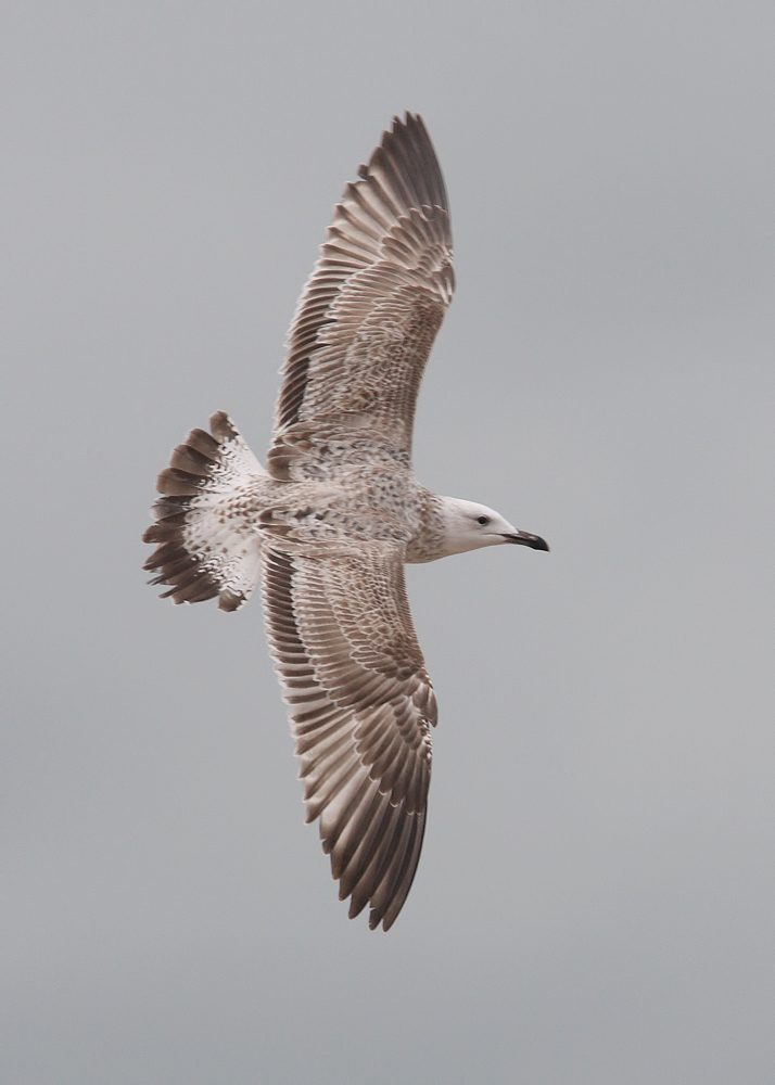 Larus cachinnans 2CY 01P4 November 12 2015, Switzerland. Picture: Laridoprout. See Flickr photostream of Laridoprout. 2nd gen flight feathers. Still some brown scaps in the grey saddle. |