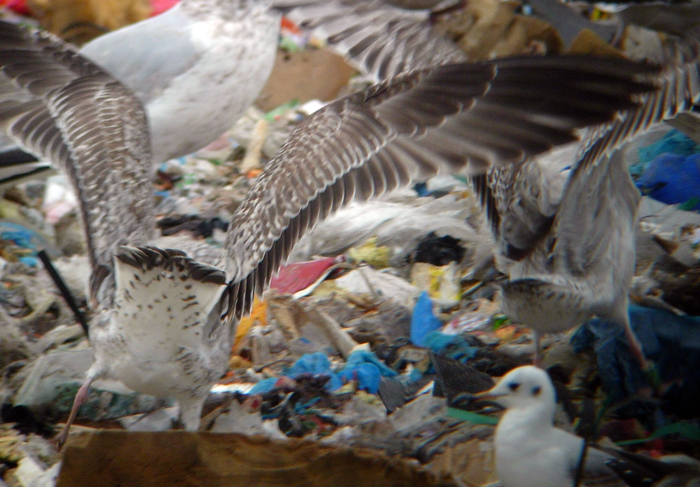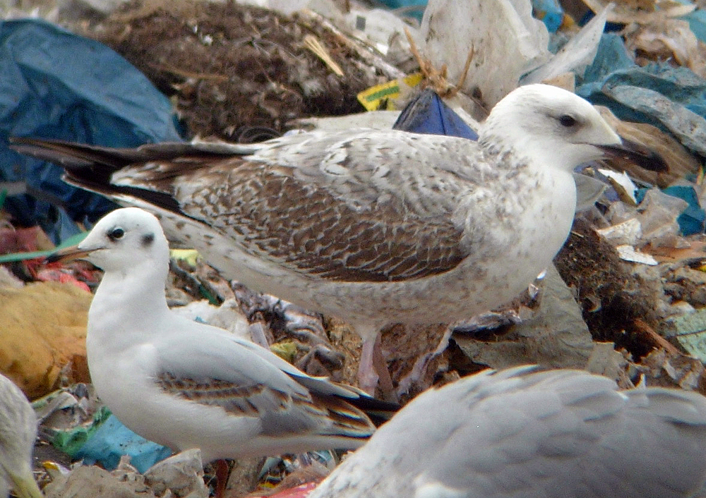 Larus cachinnans 1CY 042P November 03 2006, Deponie Pohlsche Heide - Minden, Germany (52°23'05N, 08°46'45E). Picture: Armin Deutsch. Green ring from Poland. No details received yet / data pending. Bird with much white in the inner GC and lower TT, apical spots missing and very clean proximal part of rectrices.