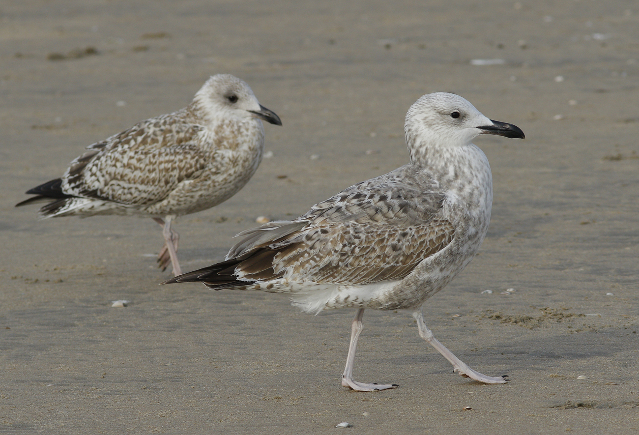 Larus cachinnans 1CY, November 04 2016, Katwijk, the Netherlands. Several coverts replaced for 2nd gen. For cachinnans, quite a lot of streaking on the the head. |