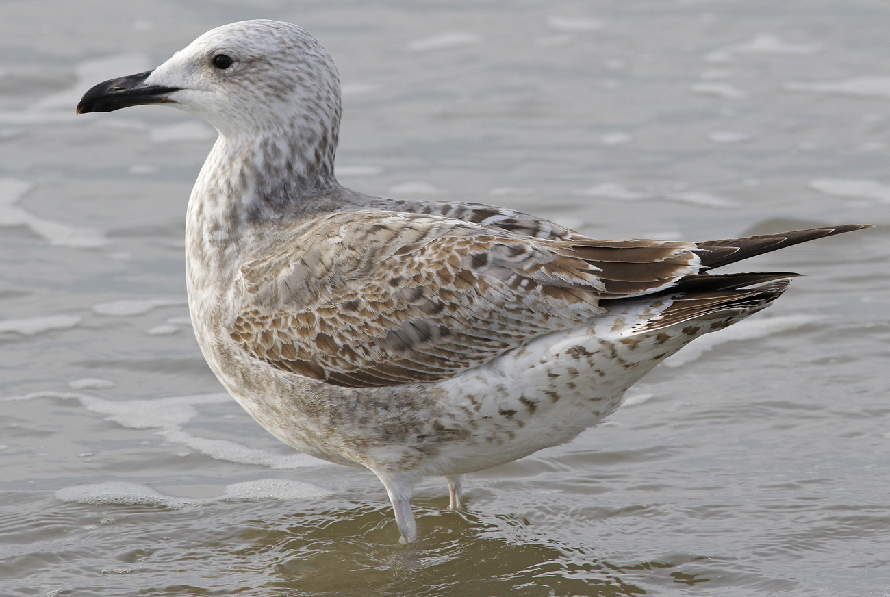 Larus cachinnans 1CY, November 04 2016, Katwijk, the Netherlands. Several coverts replaced for 2nd gen. For cachinnans, quite a lot of streaking on the the head. |