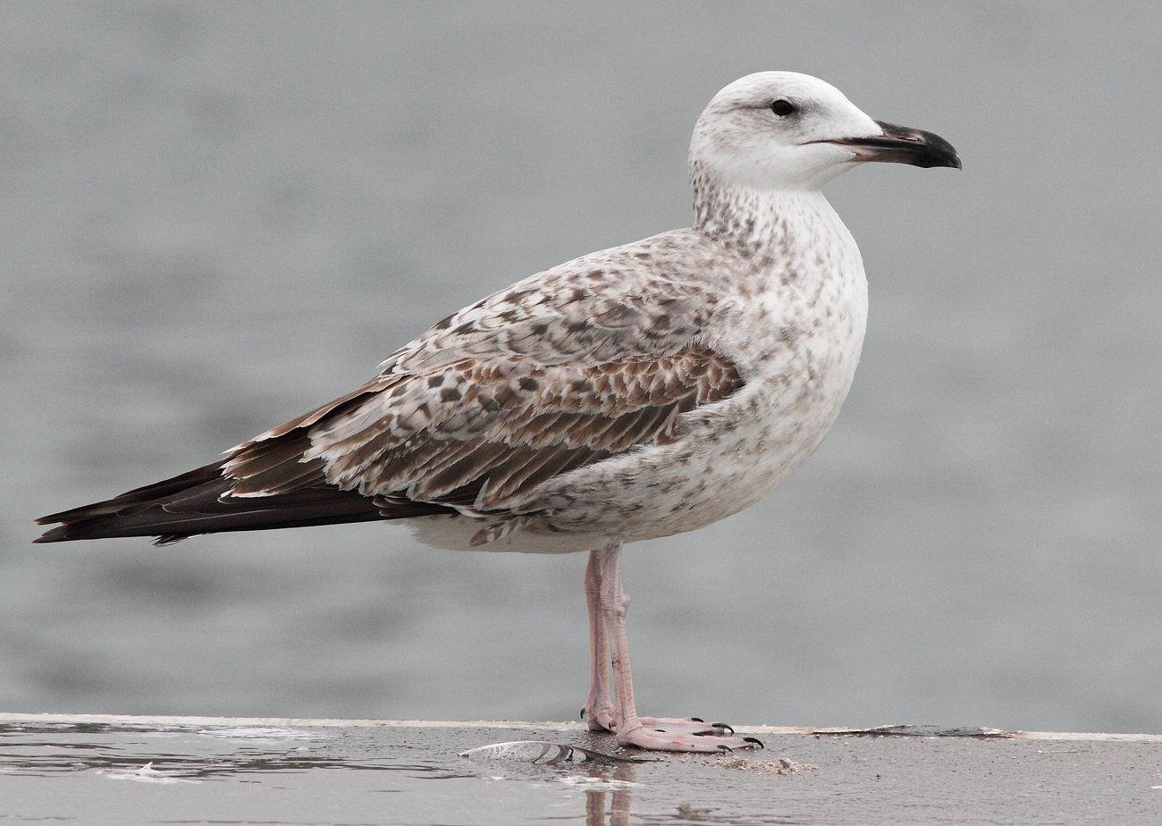Larus cachinnans 1CY, October 21 2015, Boulogne-sur-Mer, France. Picture: Jean-Michel Sauvage. Scaps replaced. Also several inner wing-coverts replaced for 2nd gen. |