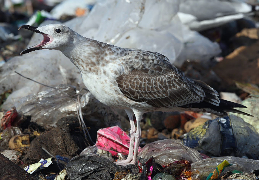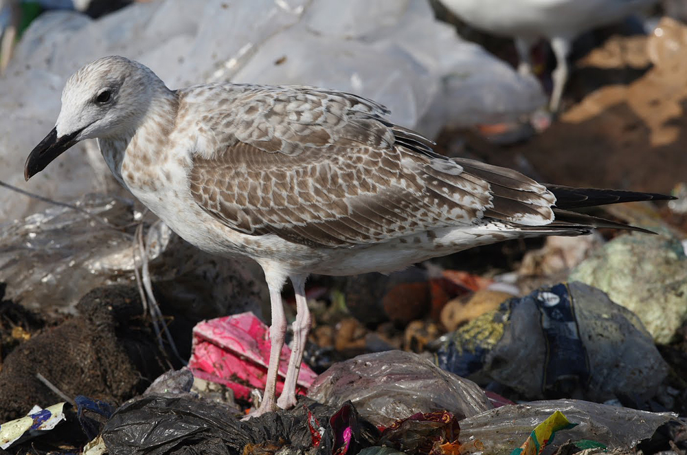 Larus cachinnans 1cy, 04-12 September 2009, Klaipeda, Lithuania. Picture: Chris Gibbins. Most scaps replaced. Moult gap in MC and new inner GC. Upper tertial missing. |