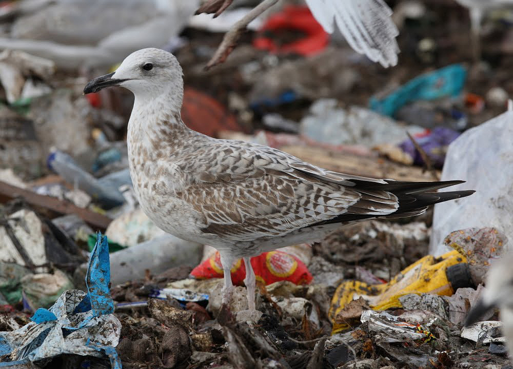 Larus cachinnans 1cy, September, Lithuania. Picture: Chris Gibbins. Maybe cachinnans, maybe hybrid. Note greater coverts, which are like in Herring Gull. However, post-juvenile moult in median coverts and parallel bill fit cachinnans. |