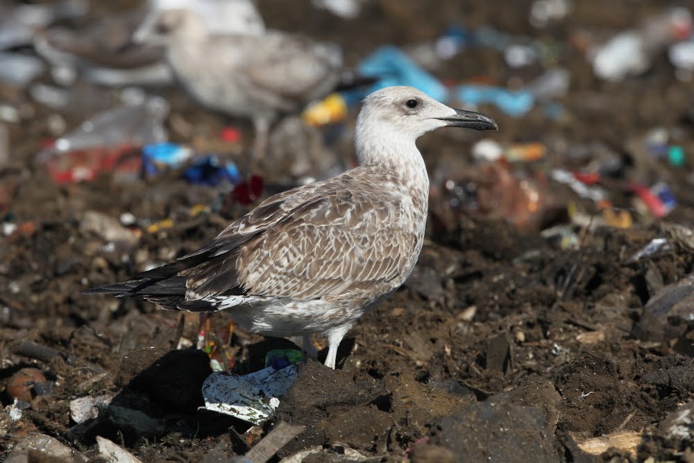 Larus cachinnans 1cy, September 12-16 2010, Dumpiai dump - Klaipeda, Lithuania. Picture: Chris Gibbins. Tertials still juvenile. Moult started in upper scapular region and now some central wing-coverts are replaced as well. |