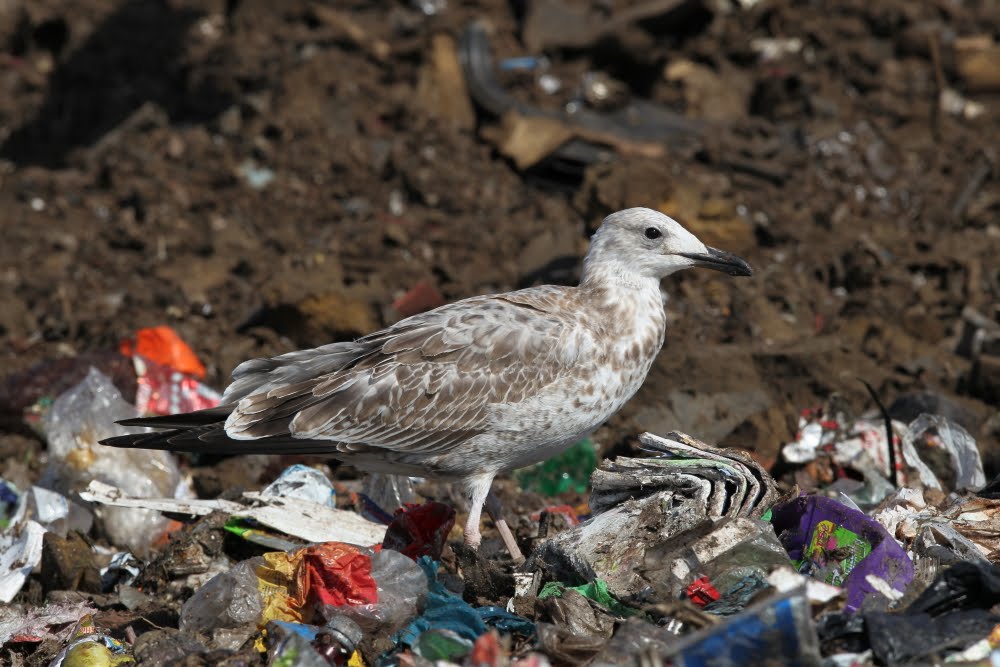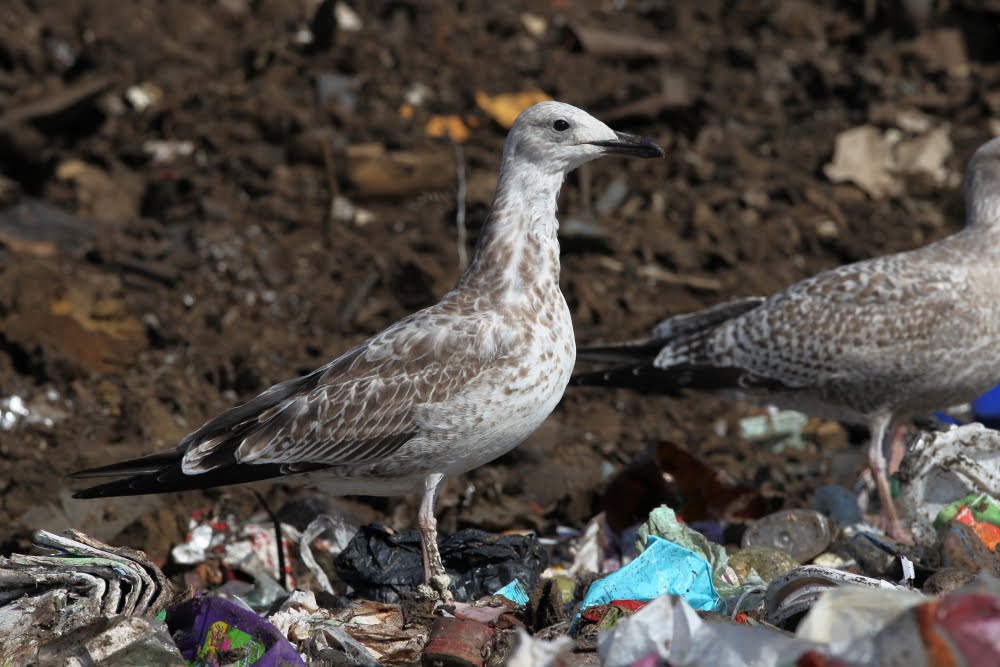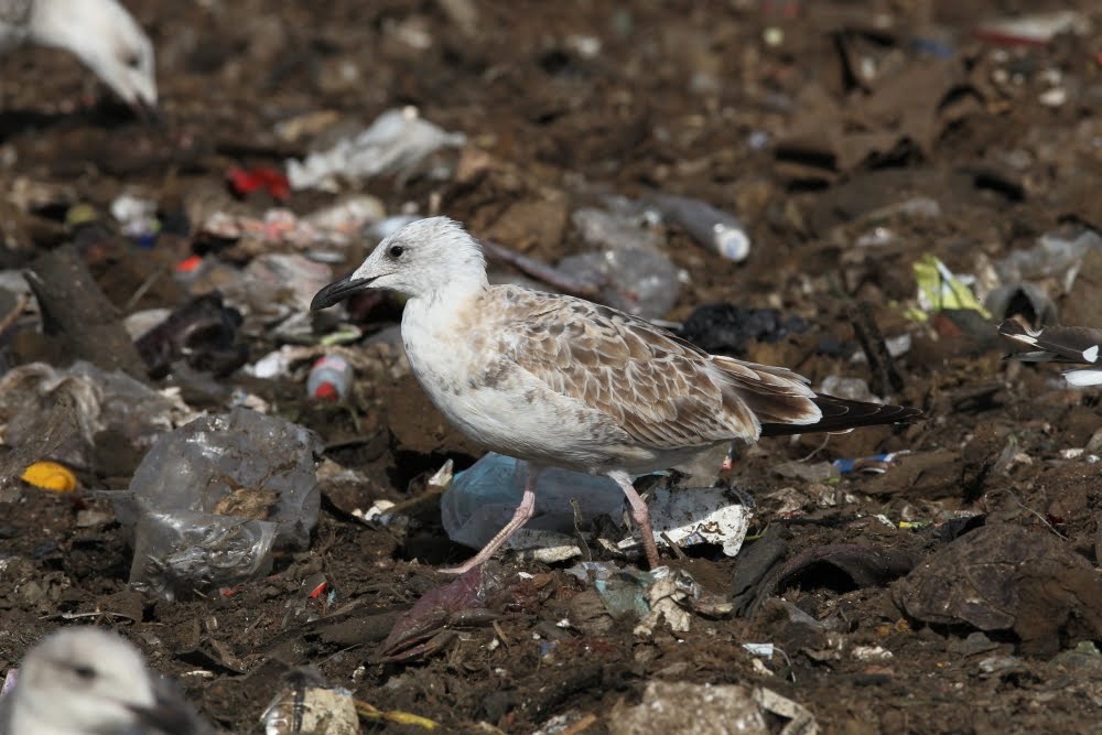 Larus cachinnans 1cy, September 12-16 2010, Dumpiai dump - Klaipeda, Lithuania. Picture: Chris Gibbins. Tertials and all wing-coverts still juvenile, but note moult gaps in lower lesser coverts, inner median coverts and inner greater coverts. Moult started in upper scapular region with quite some feathers replaced.
