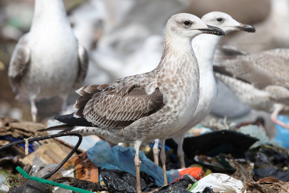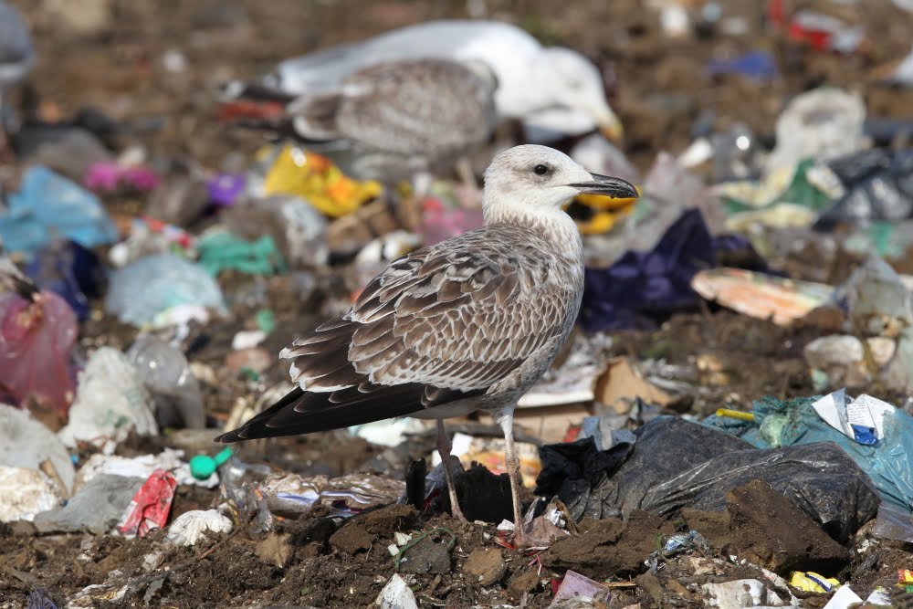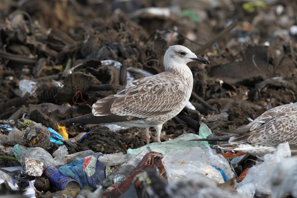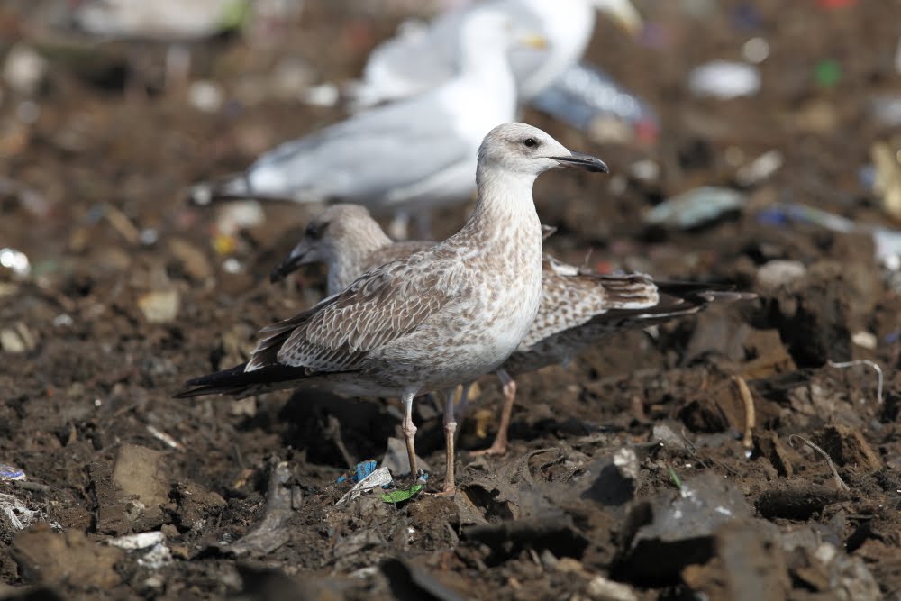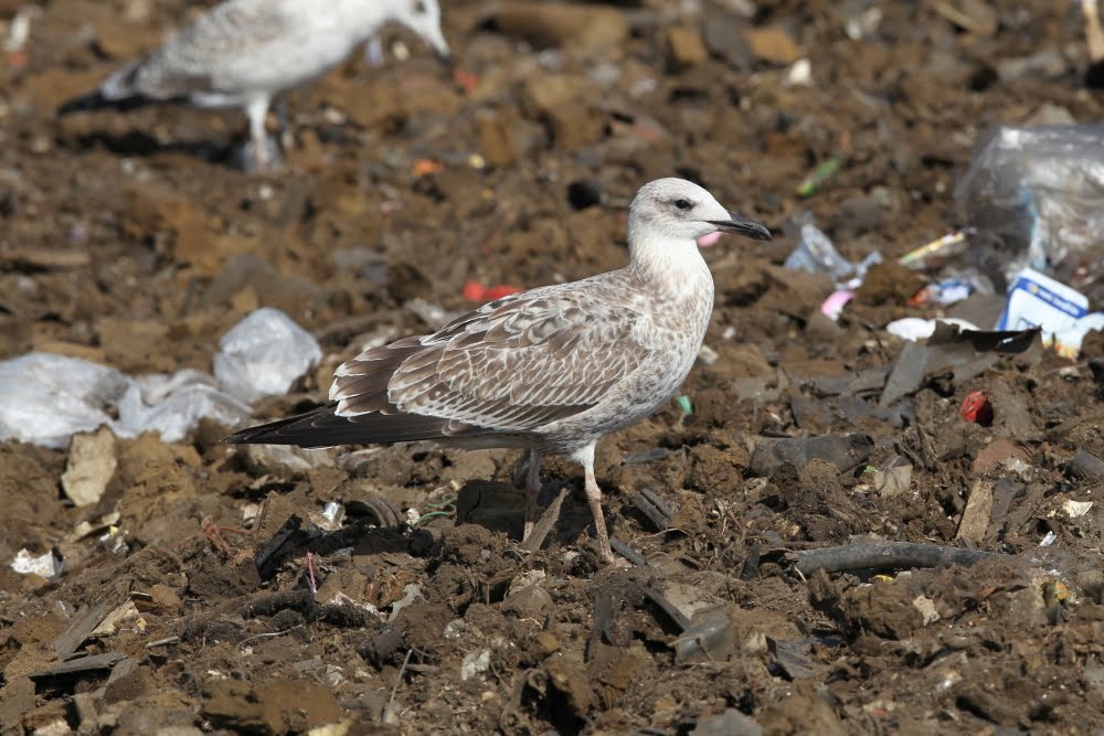Larus cachinnans 1cy, September 12-16 2010, Dumpiai dump - Klaipeda, Lithuania. Picture: Chris Gibbins. Tertials and all wing-coverts still juvenile. Moult started in upper scapular region.