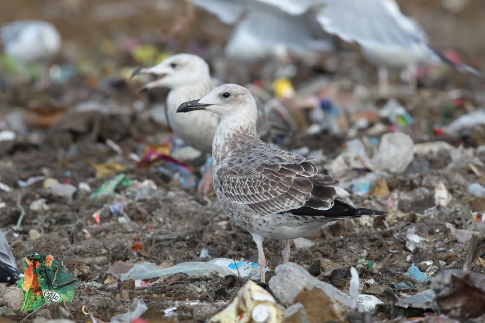 Larus cachinnans 1cy, September 12-16 2010, Dumpiai dump - Klaipeda, Lithuania. Picture: Chris Gibbins. Tertials and all wing-coverts still juvenile. Moult started in upper scapular region. |