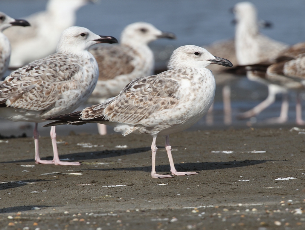 Larus cachinnans 1cy, September 12-24 2011, Sijazan, Azerbaijan. Picture: Chris Gibbins. Extensive post-juvenile moult in wing-coverts and upper tertials. |