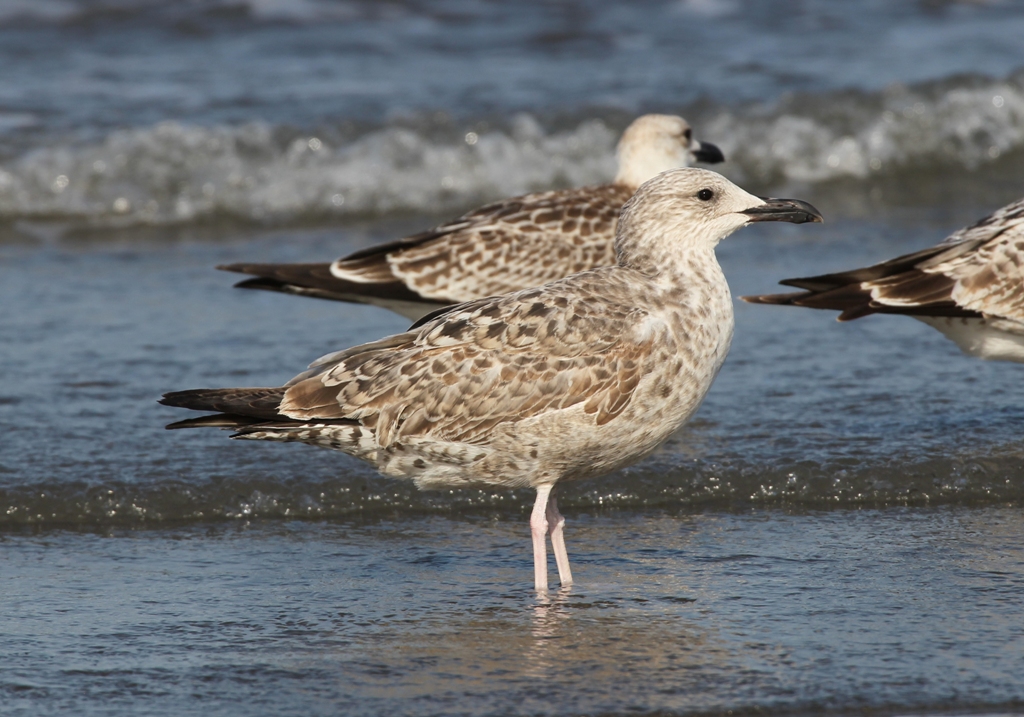 Larus cachinnans 1cy, September 12-24 2011, Sijazan, Azerbaijan. Picture: Chris Gibbins. Head shape and streaking on head doesn't look promissing, but note extensive post-juvenile moult in coverts and upper tertials. |