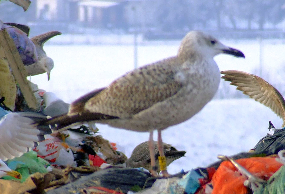 Larus cachinnans 1CY 3L7E December 19 2010, Jakuševec-Zagreb, Croatia. Picture: ringing team Luka Jurinovic. Read at Zagreb landfill, from Luthiania. No coverts or tertials replaced in post-juvenile moult. |