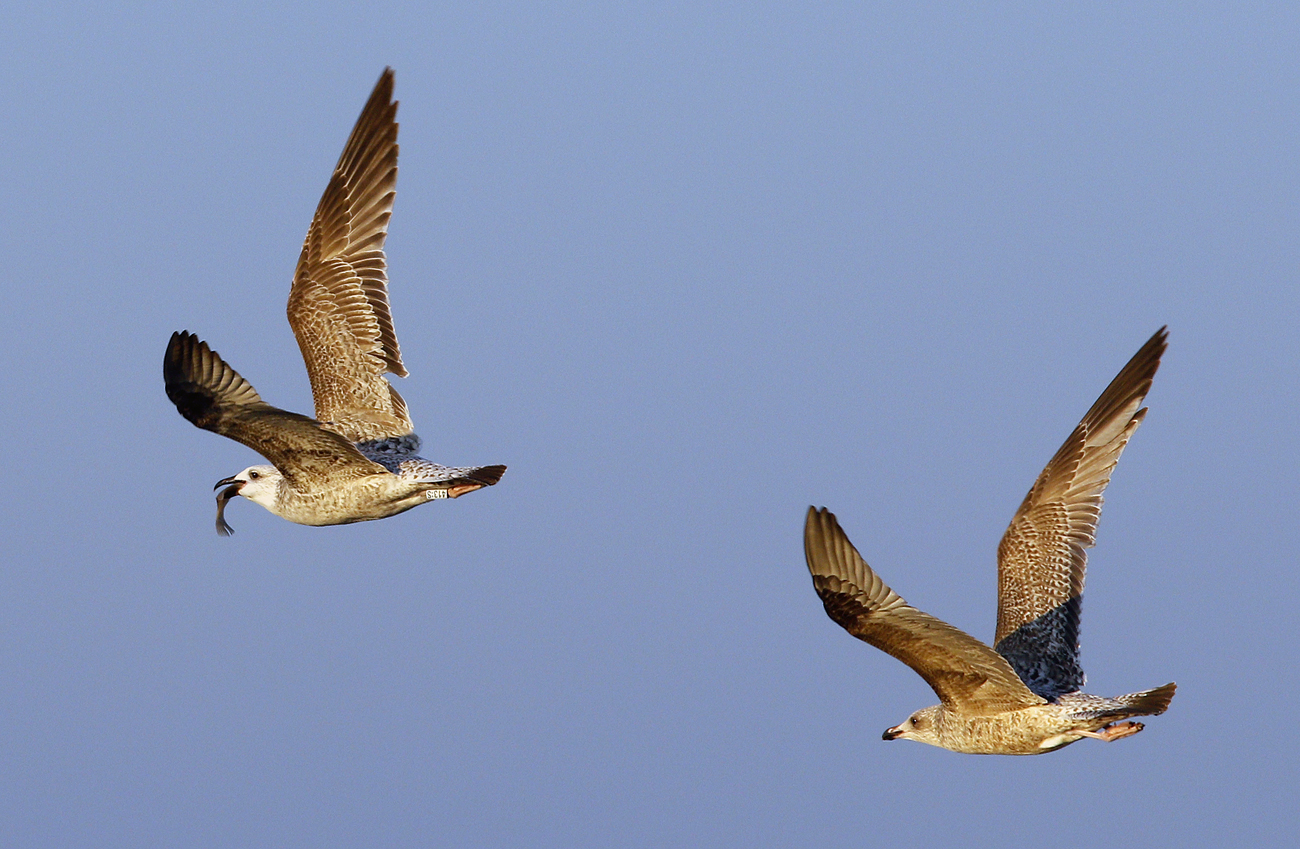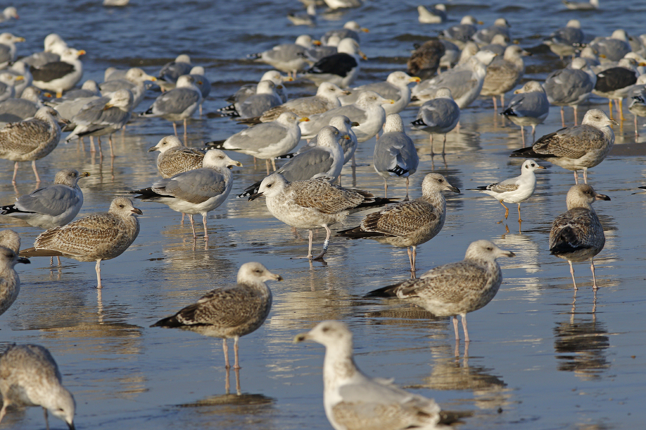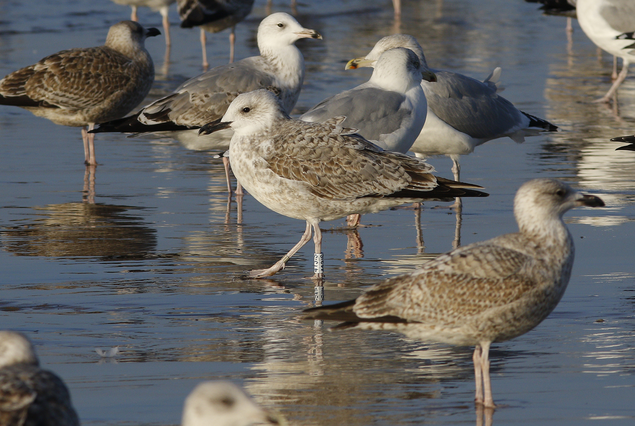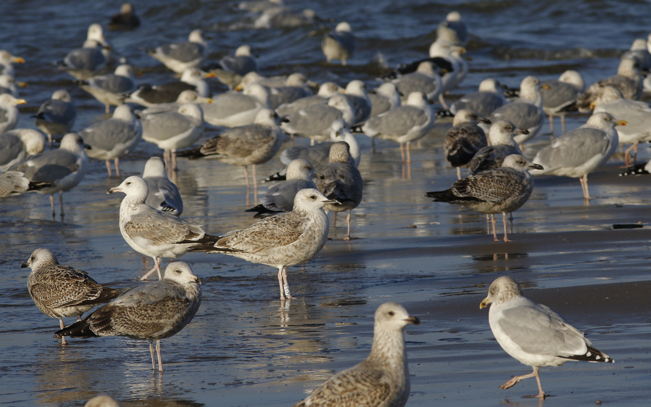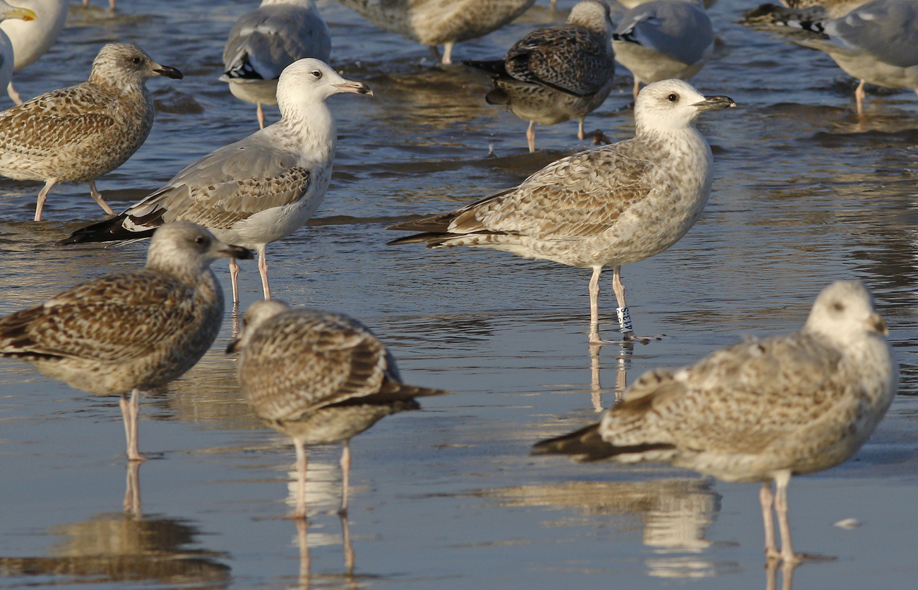 Larus cachinnans 1CY 413:S November 11 2016, Katwijk, the Netherlands. Ringed as pullus in Slovakia in 2016 (exact data pending). Probably ringed as pullus on June 17 2014 at Slanica, Oravská priehrada – Vtáčí ostrov, Námestovo district, Slovakia (49°24’50N, 19°30’30E). Many coverts replaced for 2nd gen.