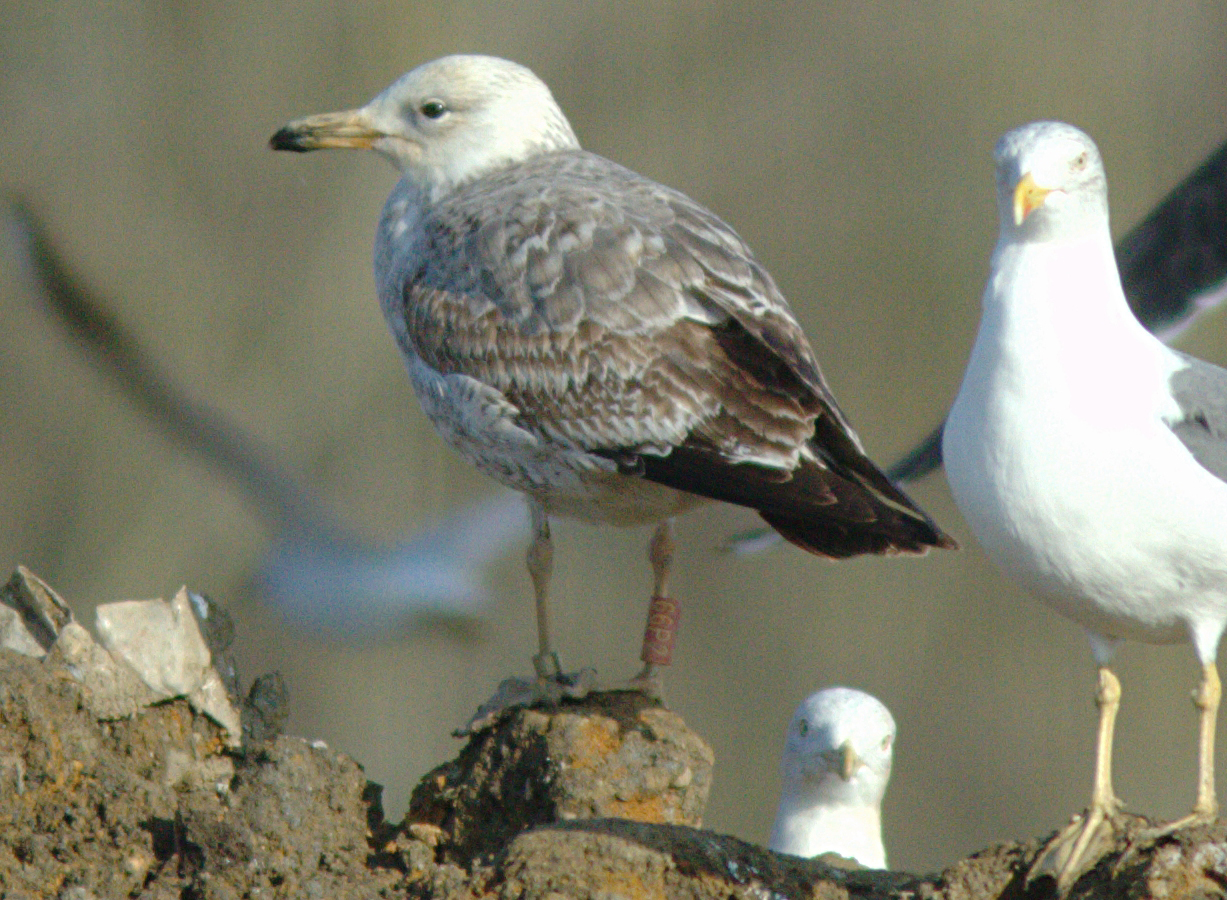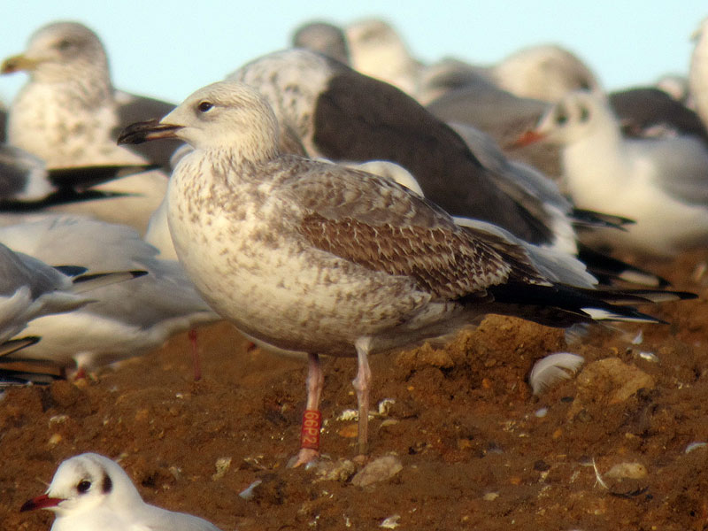 Larus cachinnans 66P2 1CY-2CY, December 2014 - January 2015, landfill Champteussé-sur-Baconne, Maine-et-Loire, France (47°39N, 0°38W). Red 66P2, ringed as pullus on May 15 2014 at Kozielno, Paczkow, S-SW Poland, (50°28' N, 16°58' E). SW Poland, close to the Tzech border. Larus cachinnans 66P2 1CY, December 26 2014, landfill Champteussé-sur-Baconne, Maine-et-Loire, France (47°39N, 0°38W). Picture: Alain Fossé. All scaps replaced, no covert and no tertials replaced. Larus cachinnans 66P2 2CY, January 22 2015, landfill Champteussé-sur-Baconne, Maine-et-Loire, France (47°39N, 0°38W). Picture: Francky Recoquillon. Bill turned pale pretty quickly. |