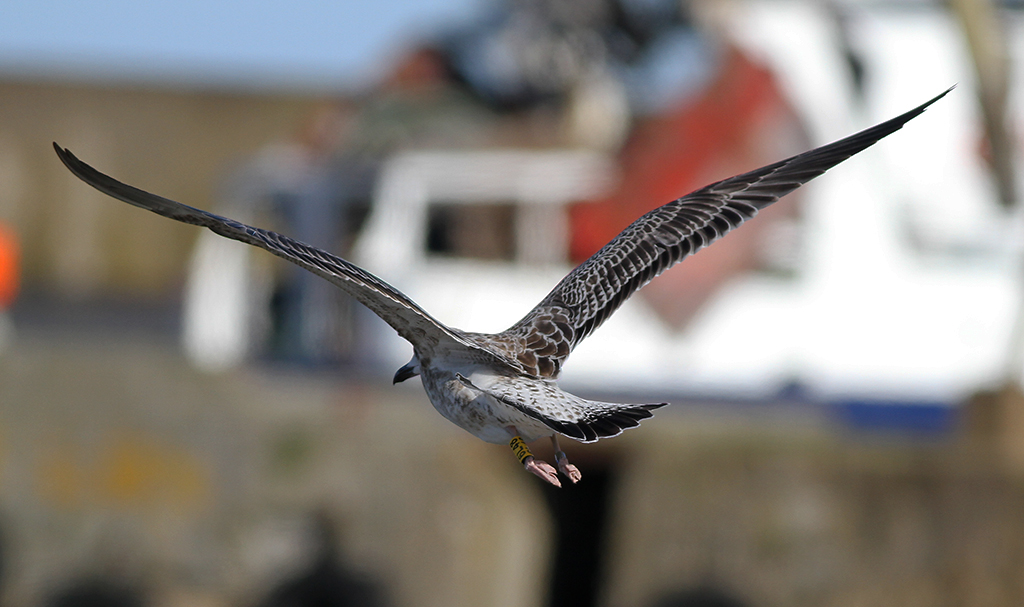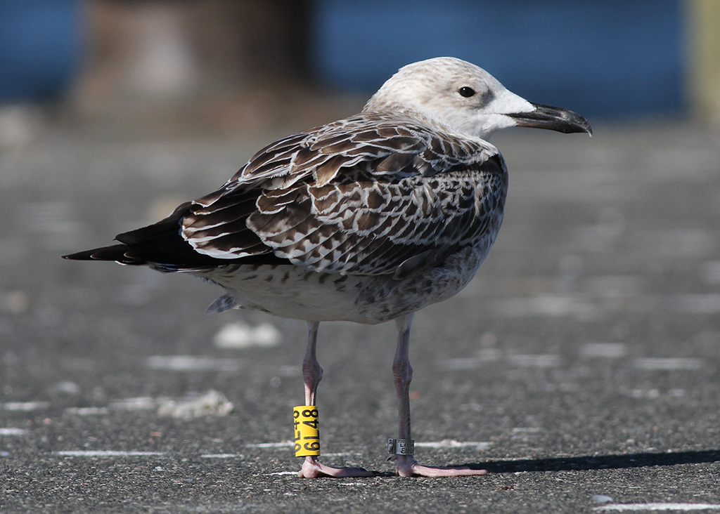 Larus cachinnans 1CY 6L48 August 14 2015, Simrishamn, Sweden. Picture: Jörgen Bernsmo. Yellow 6L48 from Lithuania, possibly Lake Kretuonas. Juvenile plumage.