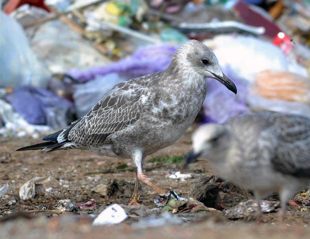 Larus cachinnans 1CY PLG DN-25430 August - October 2011, Deponie Pohlsche Heide - Minden, Germany (52°23'05N, 08°46'45E). Picture: Armin Deutsch. Metal ring from Poland, PLG DN-25430, cachinnans ringed as pullus on May 31 2011 in Mietkowski, Mietkow, SW Poland (50°56' N, 16°35' E). Recoveries: