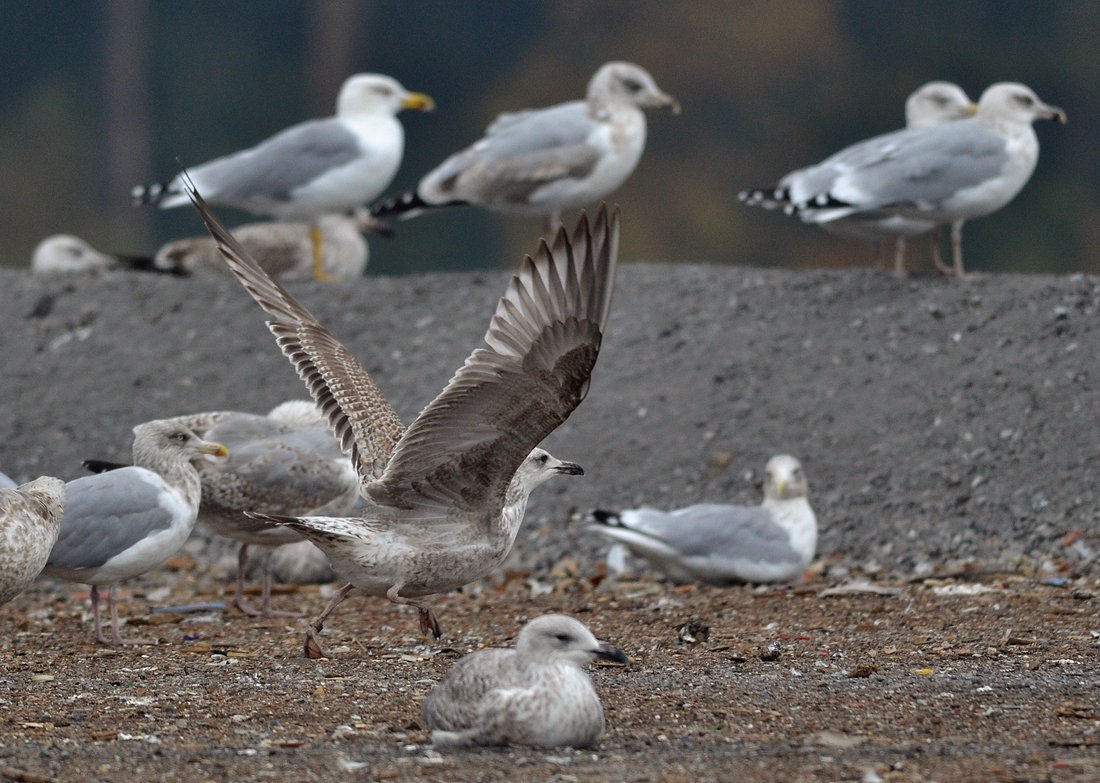 Larus cachinnans hybrid 1CY PLG DN-2xx2x October 23 2012, Deponie Pohlsche Heide - Minden, Germany (52°23'05N, 08°46'45E).