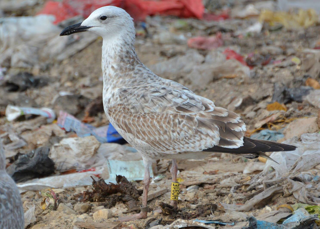 Caspian Gull with Belarus yellow plastic ring HC91E and metal BYM Minsk D00934. Ringed as pullus on June 16 2015 at Gatovo - Minsk, BELARUS (53 47 ' N 27 o 40 ' E). This is a rooftop breeding colony.