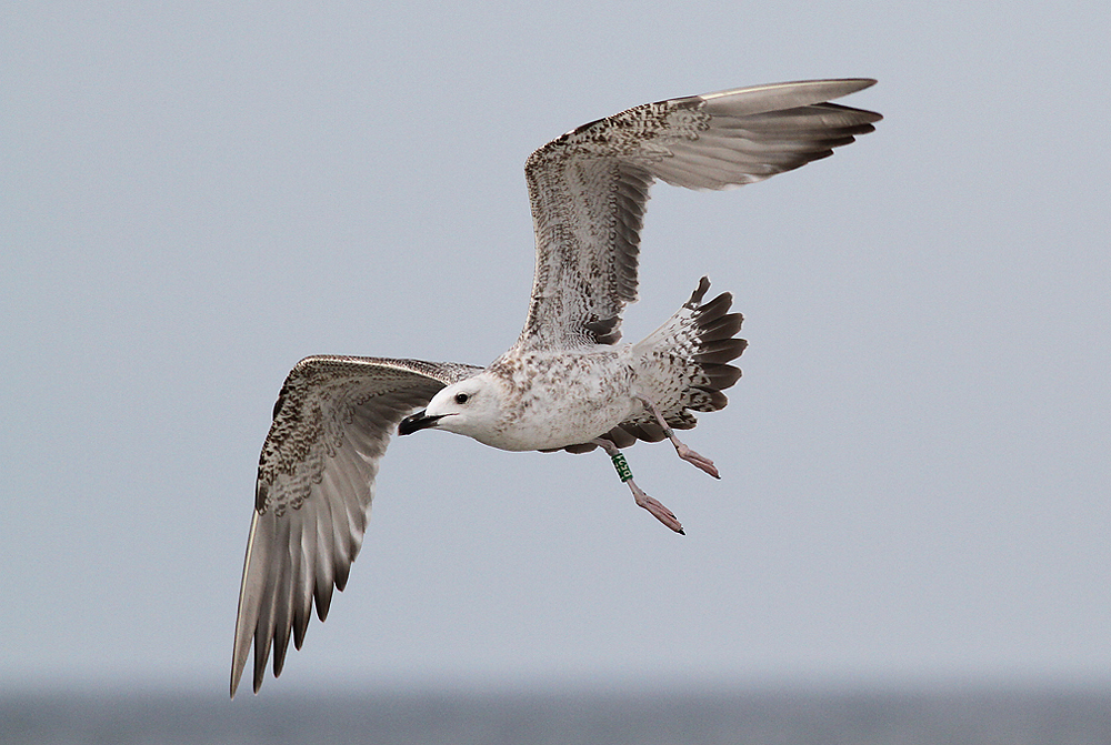 Larus cachinnans 1CY P521 September 21 2012, Simrishamn, Sweden. Picture: Jörgen Bernsmo. Bird ringed as pullus on May 30 2012 at Wytyckie Lake Wytyczno Lublin, Poland. Typical underwing and tail for cachinnans. |