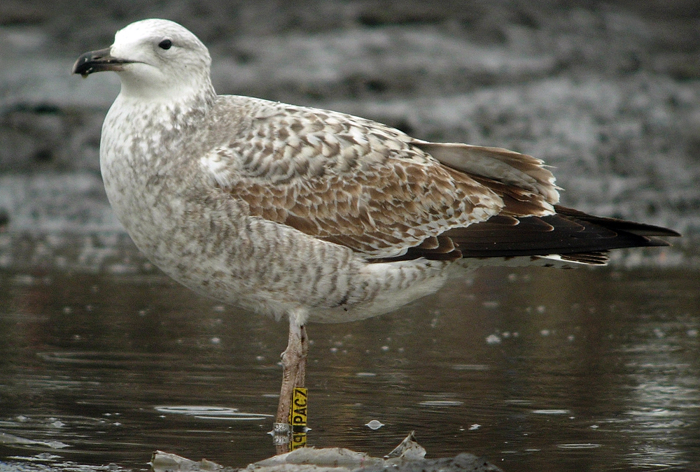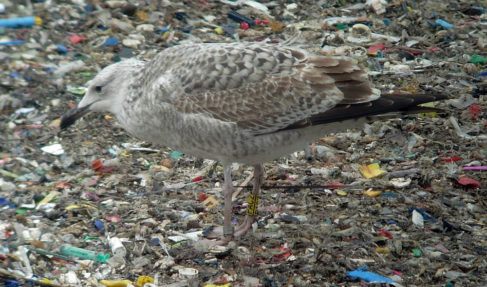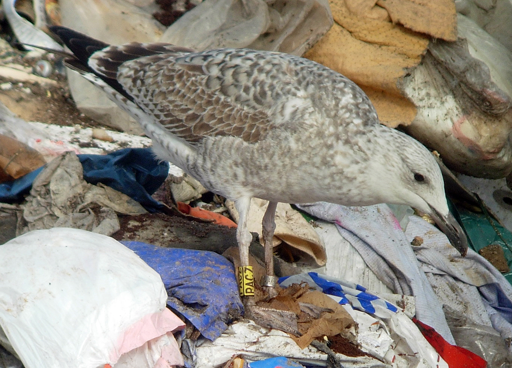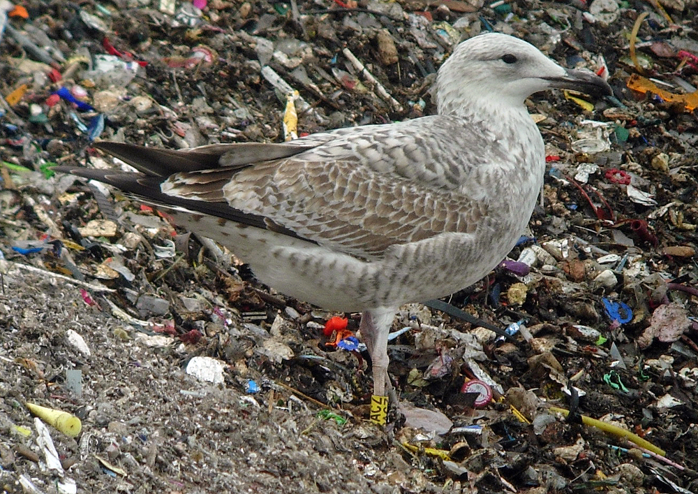 Larus cachinnans 1CY PACZ October - November 2009, Deponie Pohlsche Heide - Minden, Germany (52°23'05N, 08°46'45E). Picture: Armin Deutsch. Yellow ring from Poland.