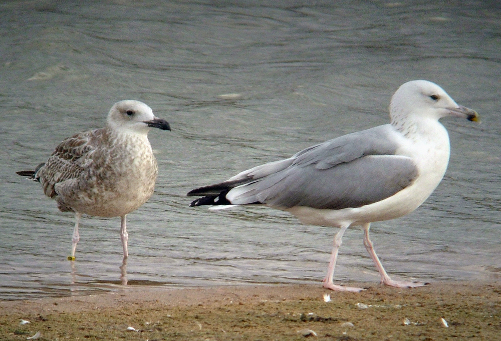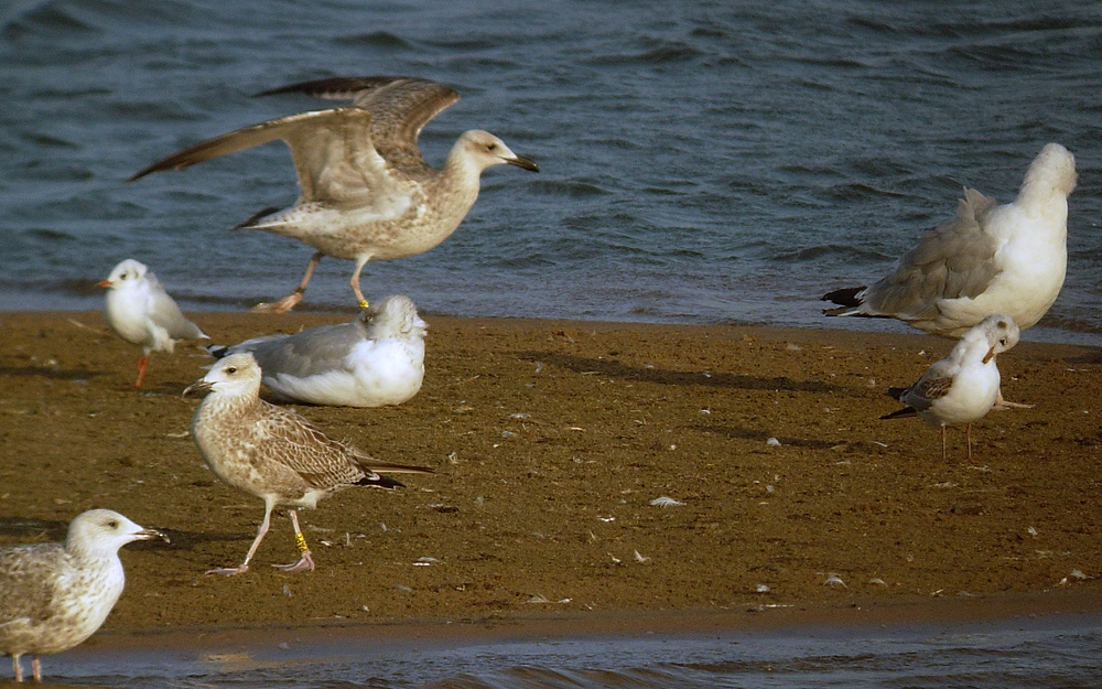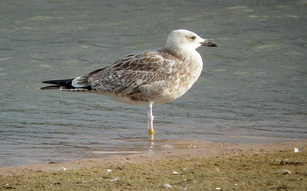 Larus cachinnans 1CY PAPP August 28 2009, Windheim - Minden, Germany (52°24'50N, 09°01'49E). Picture: Armin Deutsch. Yellow ring from Poland. Data pending, probably ringed as pullus yellow PAPP on May 21 2009 at Jankowice - Babice, S. Poland (50°02'N, 19°28'E). Second image: two yellow rings in one picture.