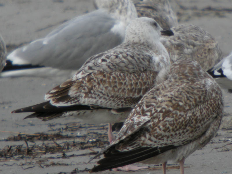 below: cachinnans 1CY PAUS October 12 2009. Råå - Helsingborg, SW Sweden. Picture: Mats Rellmar. A rather typical 1st W individual, probably a male. All scapulars, except one or two rear lower ones, renewed. All coverts and tertials juvenile.