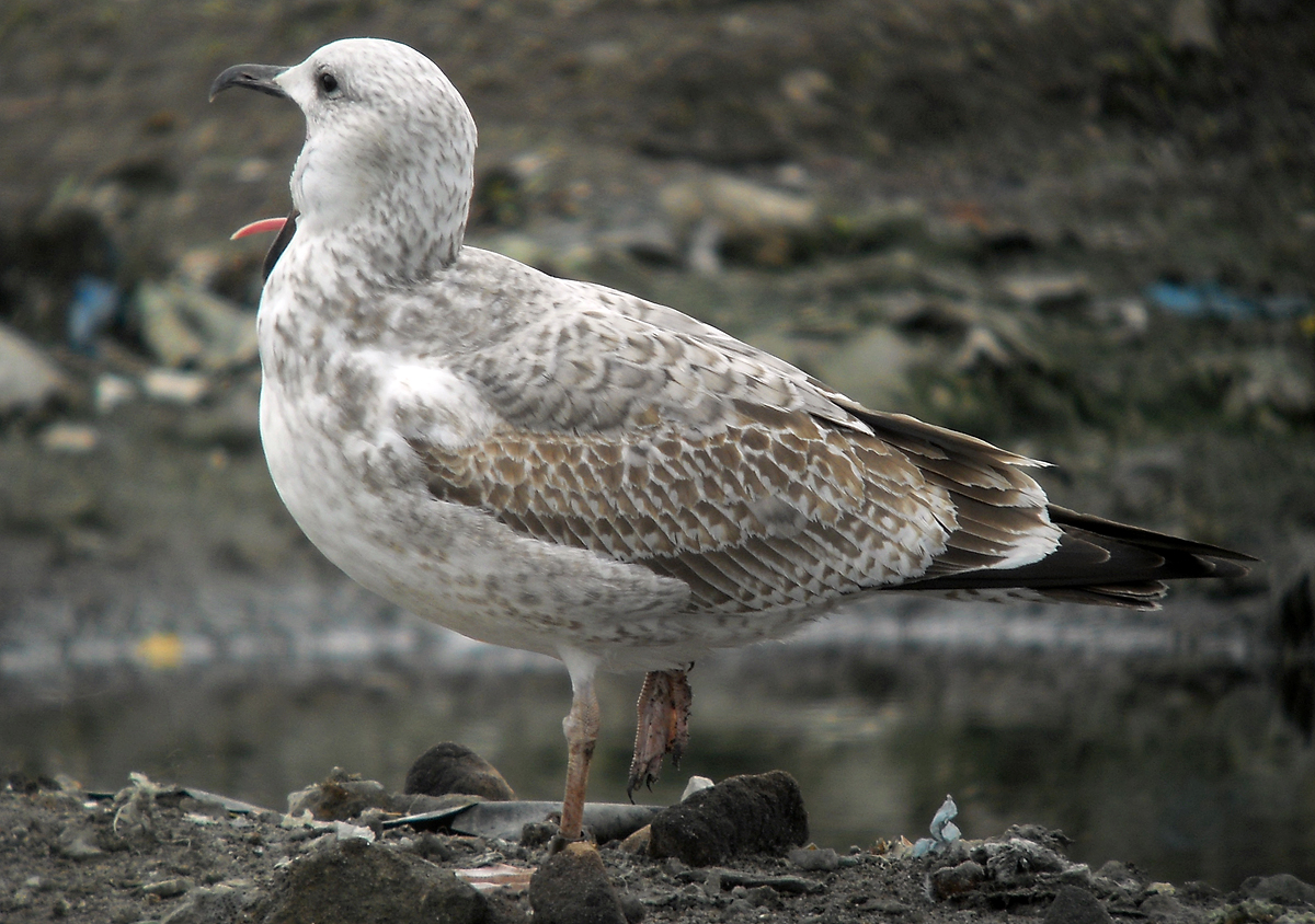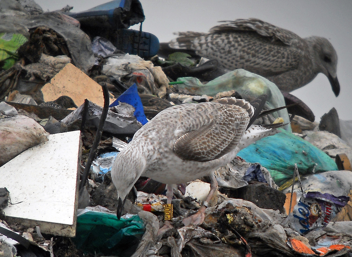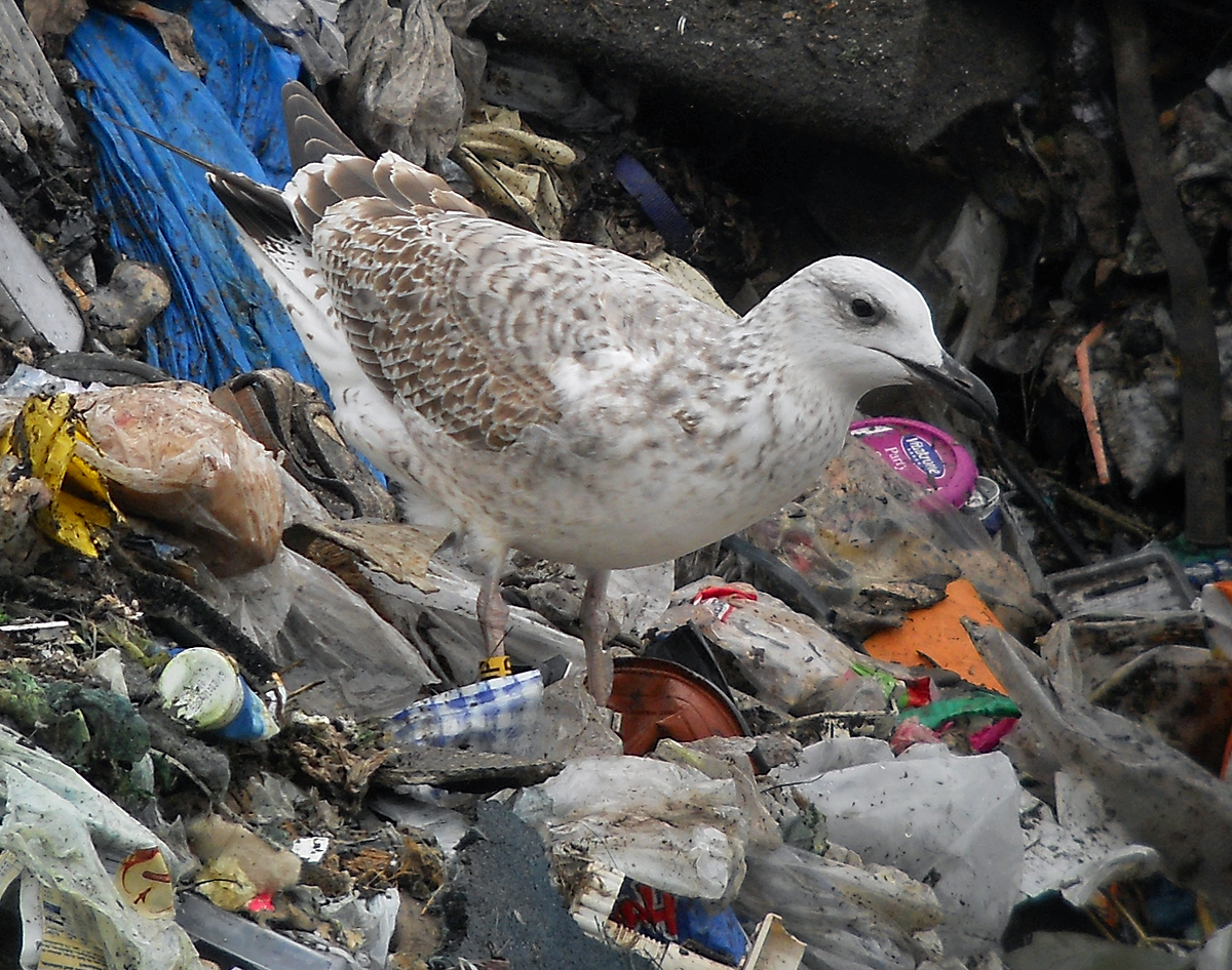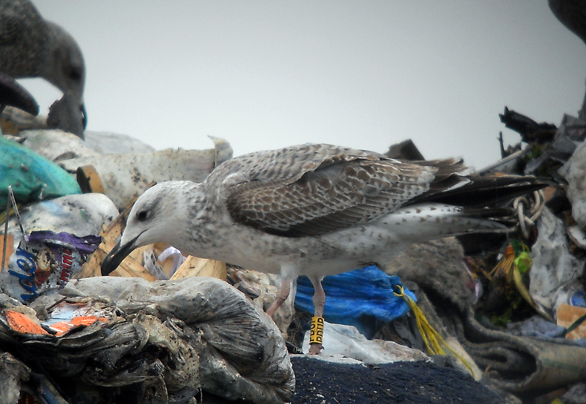 Larus cachinnans 1CY PDUP October 02 2010, Deponie Pohlsche Heide - Minden, Germany (52°23'05N, 08°46'45E). Picture: Armin Deutsch. Yellow PDUP and metal (PLG) DN18722, ringed as pullus on May 27 2010 at Kozielno, Paczkow, S-SW Poland, (50°29' N, 16°58' E). Recoveries: