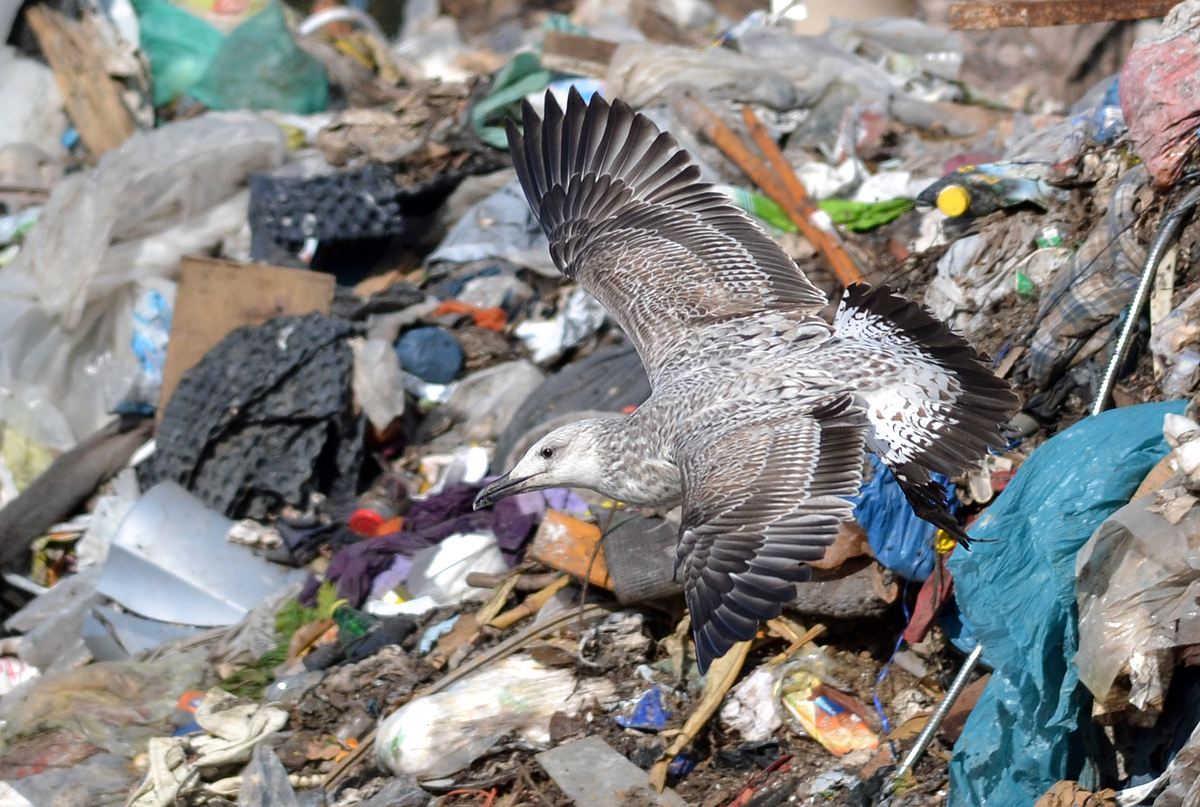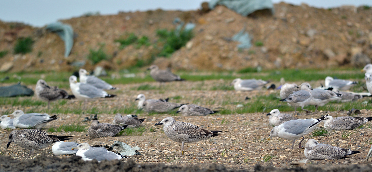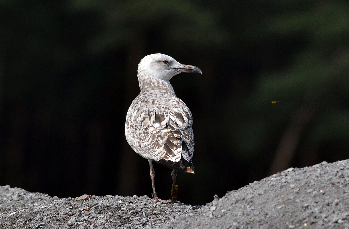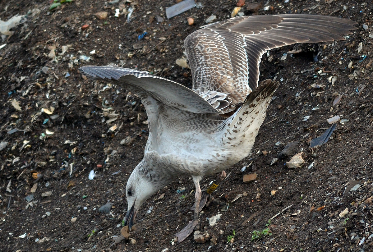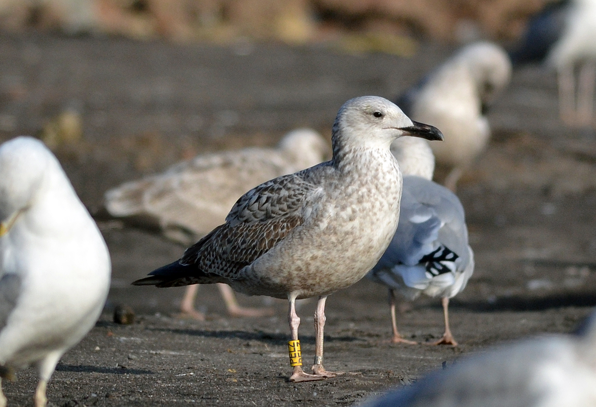 Larus cachinnans 1CY-2CY PELZ September-October 2011 & August 2012, Deponie Pohlsche Heide - Minden, Germany (52°23'05N, 08°46'45E). Picture: Armin Deutsch. Yellow PELZ and metal PLG DN-26994; ringed as pullus on May 24 2011 at Zwirownia Zakole A, Jankowice - Babice, Poland (50,02N 19,28E). Zwirownia = gravel pit, this colony is situated between the towns of Babice and Jankowice in a gravel pit. Recoveries: