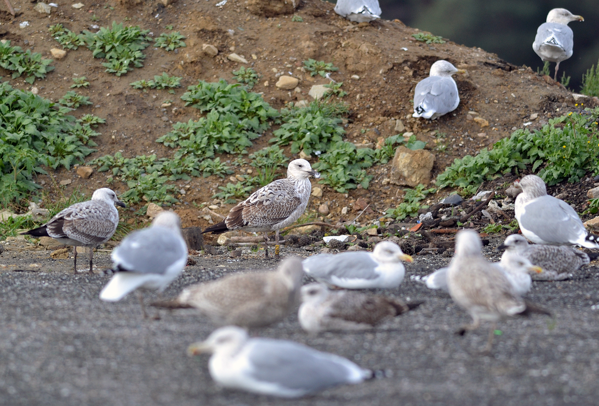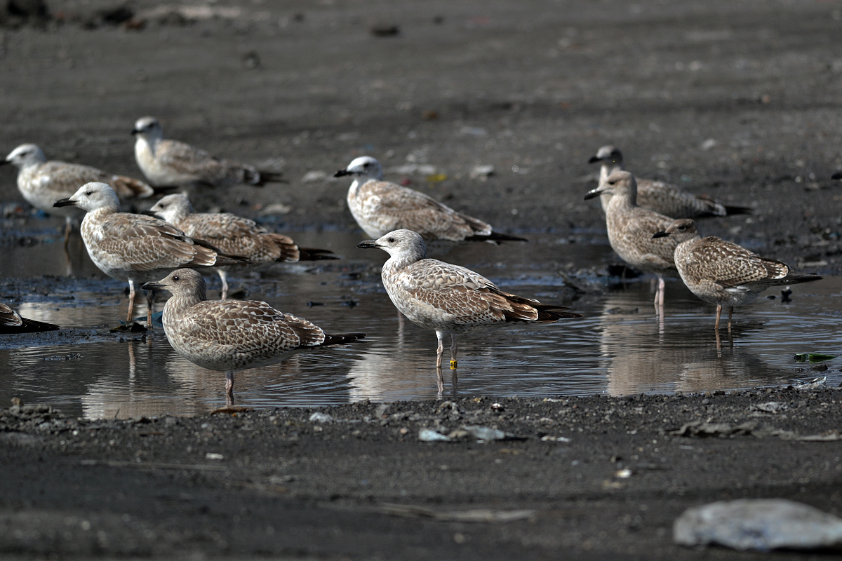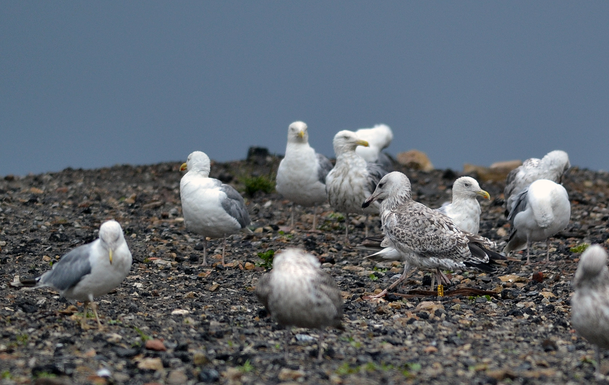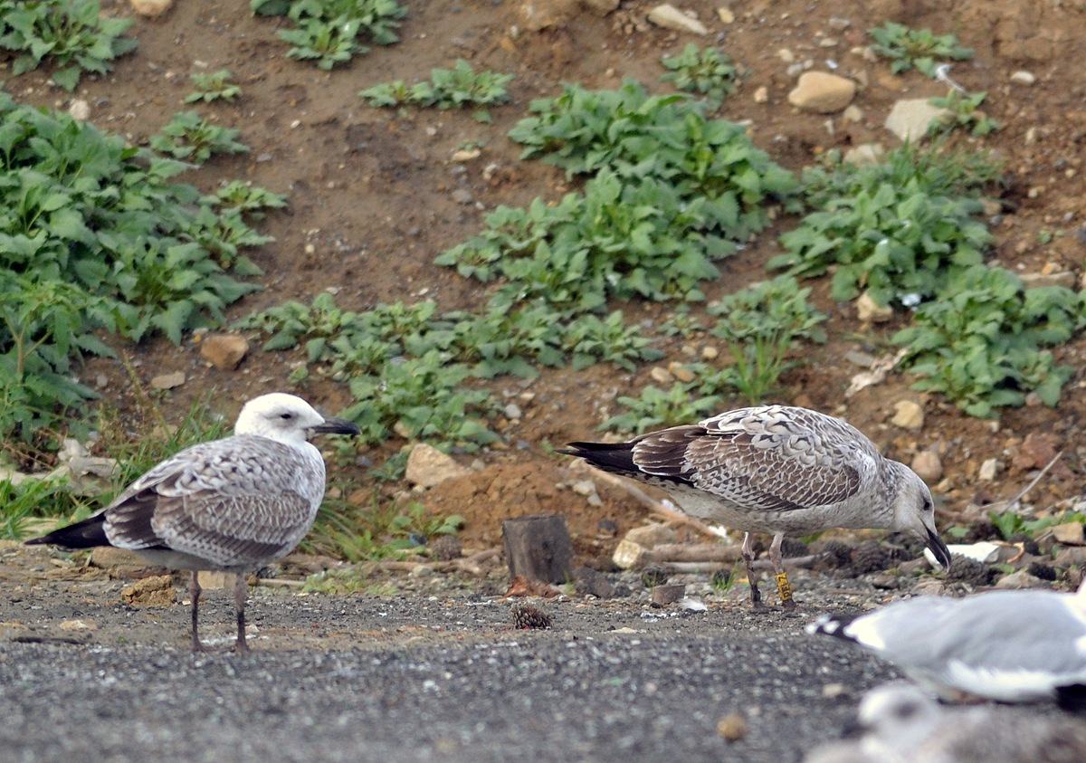 below: with 1CY cachinnans PKSD and unringed 2CY cachinnans (right). Note bill colours.