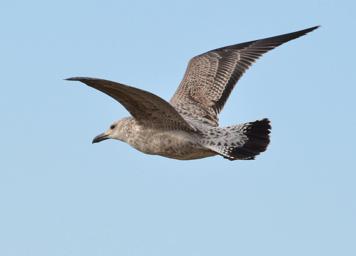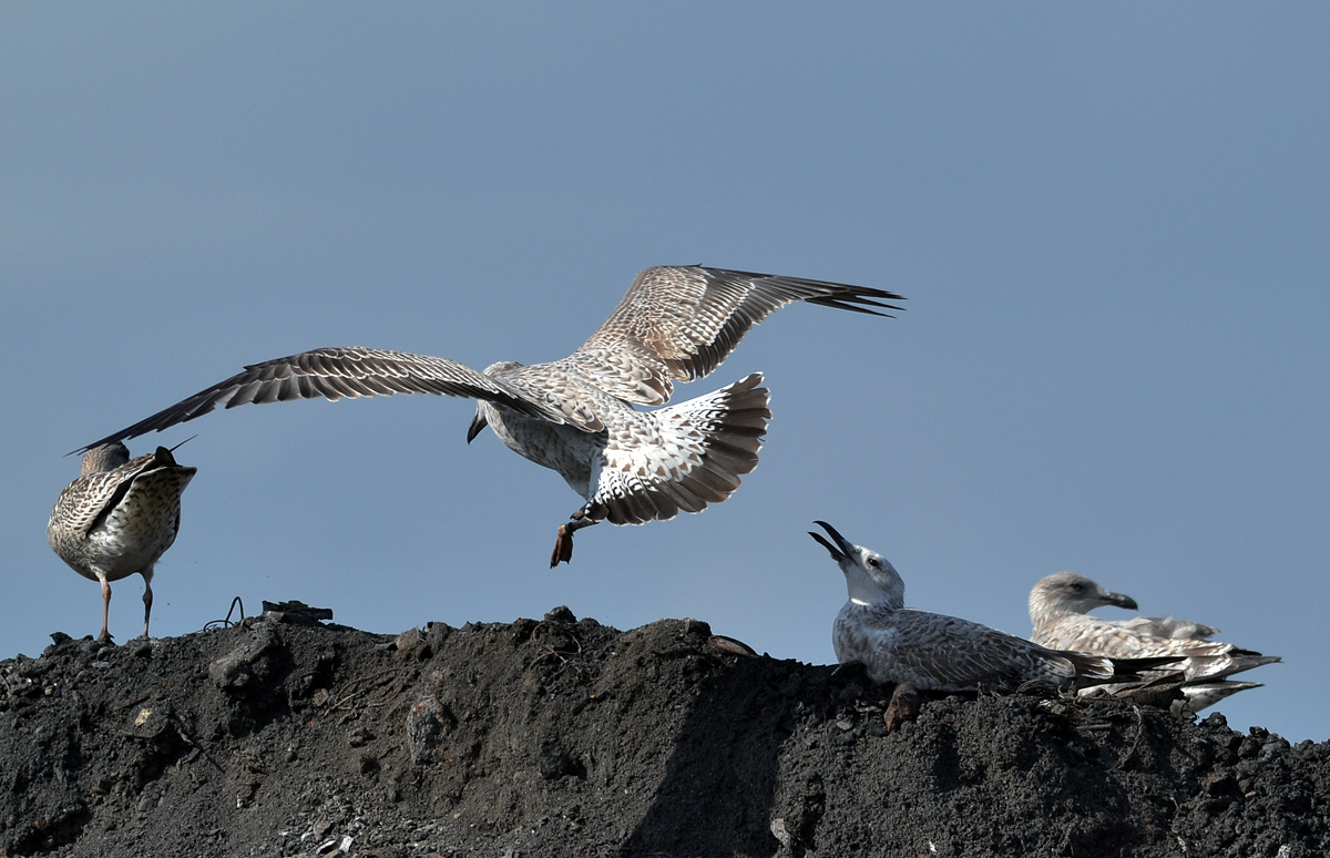 below: cachinnans 1CY PELZ October 28 2011, Deponie Pohlsche Heide - Minden, Germany (52°23'05N, 08°46'45E). Picture: Armin Deutsch. Venetian blind effect on inner primaries only visible in fully streched wing.
