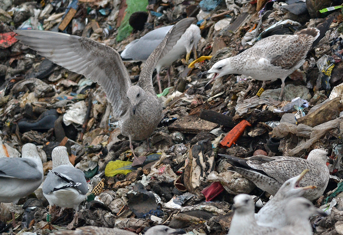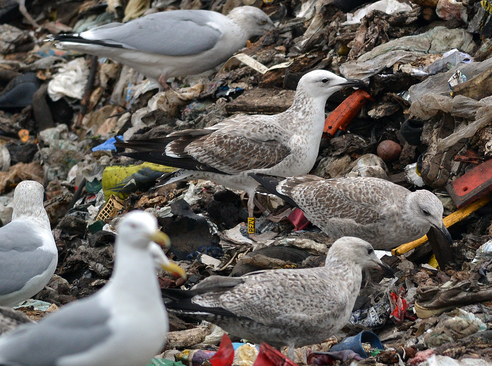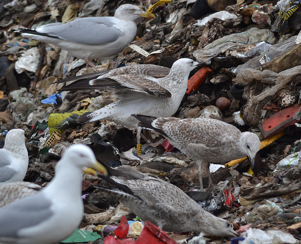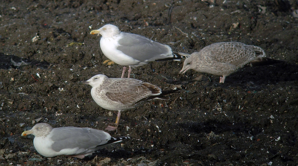 below: cachinnans 3CY PEZV January 10 2013, Deponie Pohlsche Heide - Minden, Germany (52°23'05N, 08°46'45E). Picture: Armin Deutsch. Bird in the background. Note mirror on 2nd gen P10. |