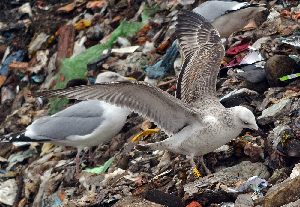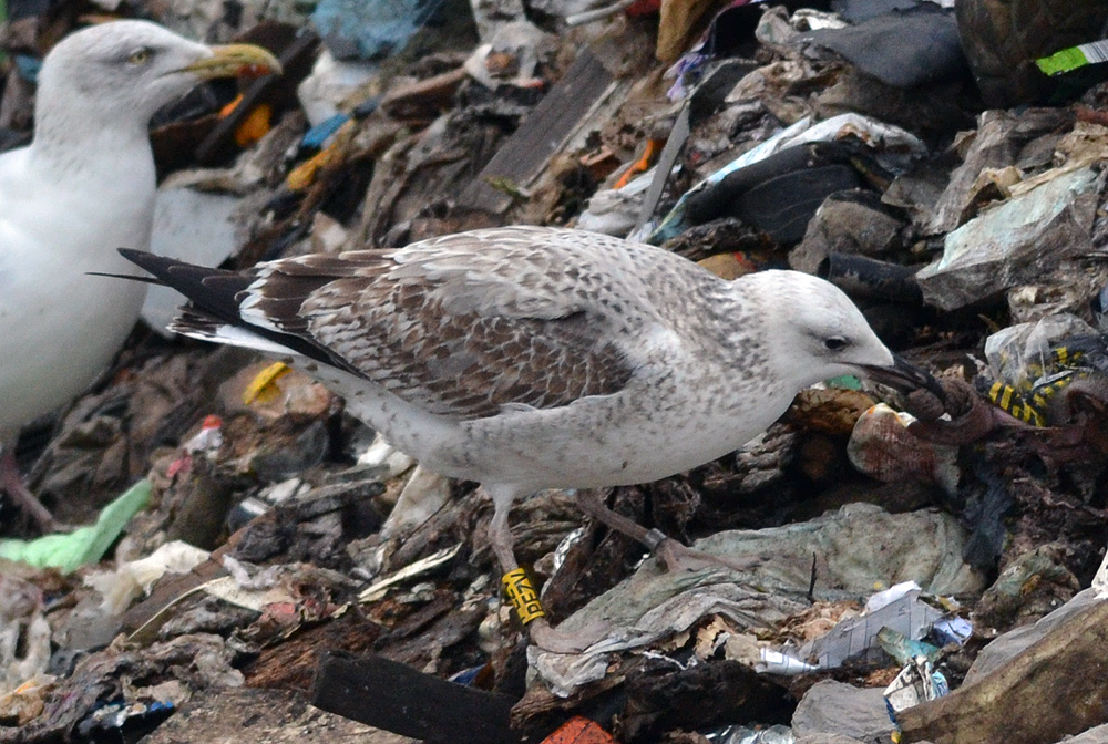 Larus cachinnans 1CY & 3CY PEZV December 2011 & January 2013, Deponie Pohlsche Heide - Minden, Germany (52°23'05N, 08°46'45E). Picture: Armin Deutsch. Yellow PEZV and metal PLG DN-27134; ringed as pullus on May 24 2011 at Zwirownia Zakole A, Jankowice - Babice, Poland (50,02N 19,28E). Zwirownia = gravel pit, this colony is situated between the towns of Babice and Jankowice in a gravel pit. Recoveries: