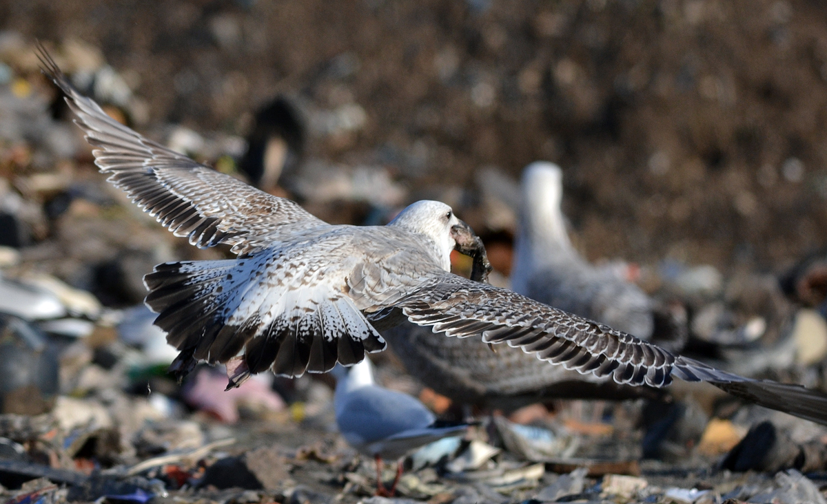 below: cachinnans 1CY PHEN November 16 2011, Deponie Pohlsche Heide - Minden, Germany (52°23'05N, 08°46'45E). Picture: Armin Deutsch. All scaps replaced. Covert and tertials still juvenile. All flight feathers juvenile.