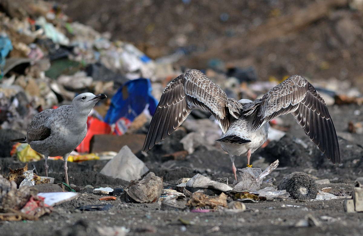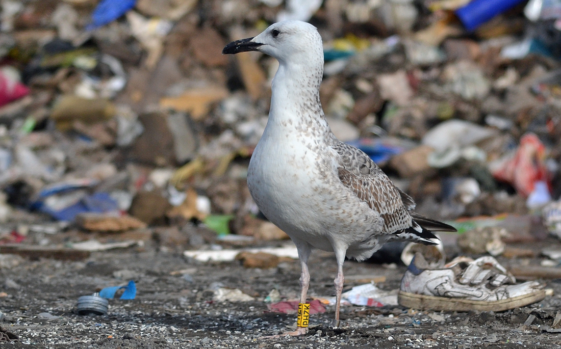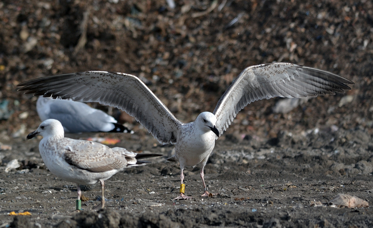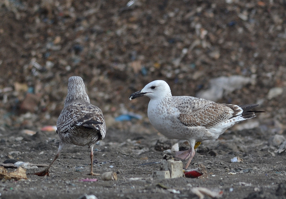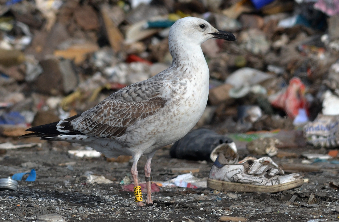 Larus cachinnans 1CY PHZK October 28 2011, Deponie Pohlsche Heide - Minden, Germany (52°23'05N, 08°46'45E). Picture: Armin Deutsch. Yellow PHZK and metal PLG DN-27629; ringed as pullus on May 26 2011 at Kozielno, Paczkow, S-SW Poland, (50°29' N, 16°58' E). Recoveries: