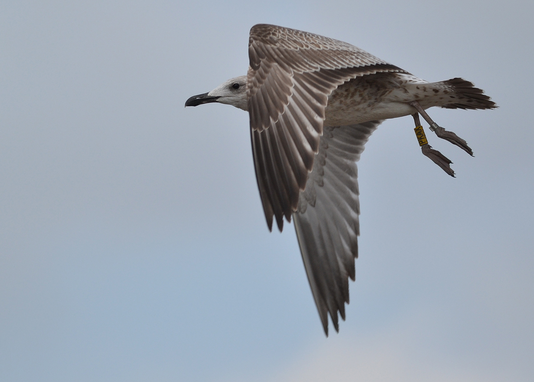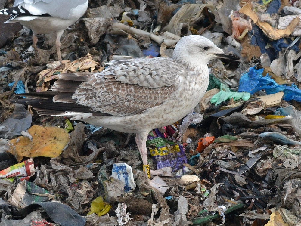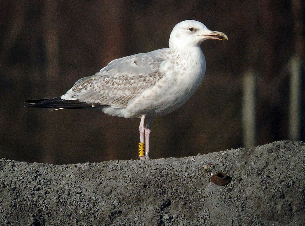 Larus cachinnans 1CY-2CY-3CY PKAX September 2011, January-March 2012, April 2013, Minden, Germany. Picture: Armin Deutsch. Yellow PKAX and metal PLG DN-27653; ringed as pullus on May 26 2011 at Kozielno, Paczkow, S-SW Poland, (50°29' N, 16°58' E). Recoveries: