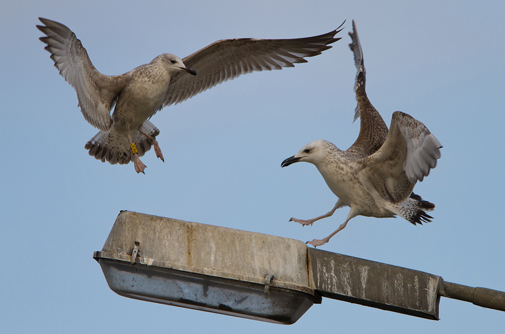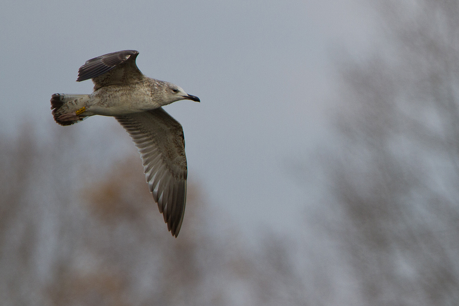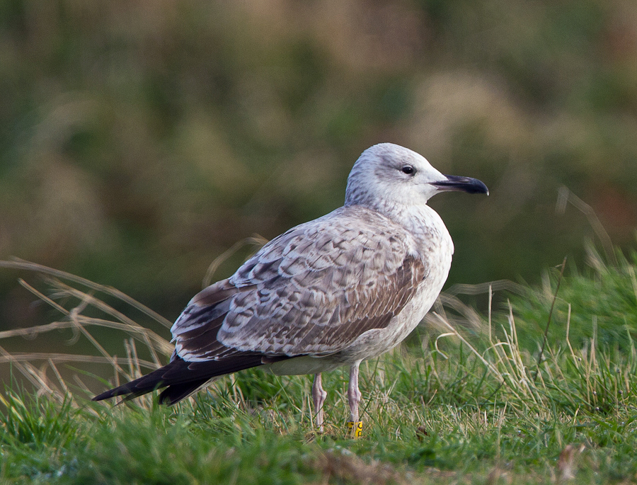 Larus cachinnans 1CY PKBC November 11 2011, Talsperre Quitzdorf, Saxony, Germany. Picture: Steve Klasan. Yellow PKBC and metal PLG DN-27655. Ringed as pullus on May 26 2011 at Kozielno Paczkow Opolskie Poland (50,476598N 16,98173E). Pale underwing in both Caspian Gulls.
