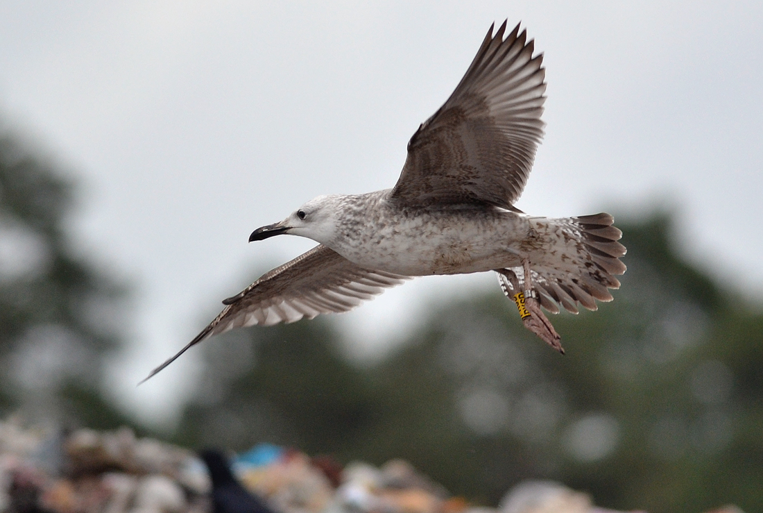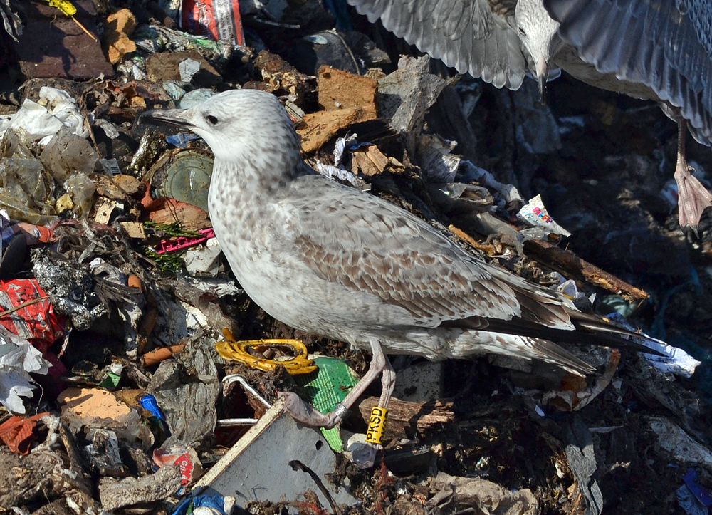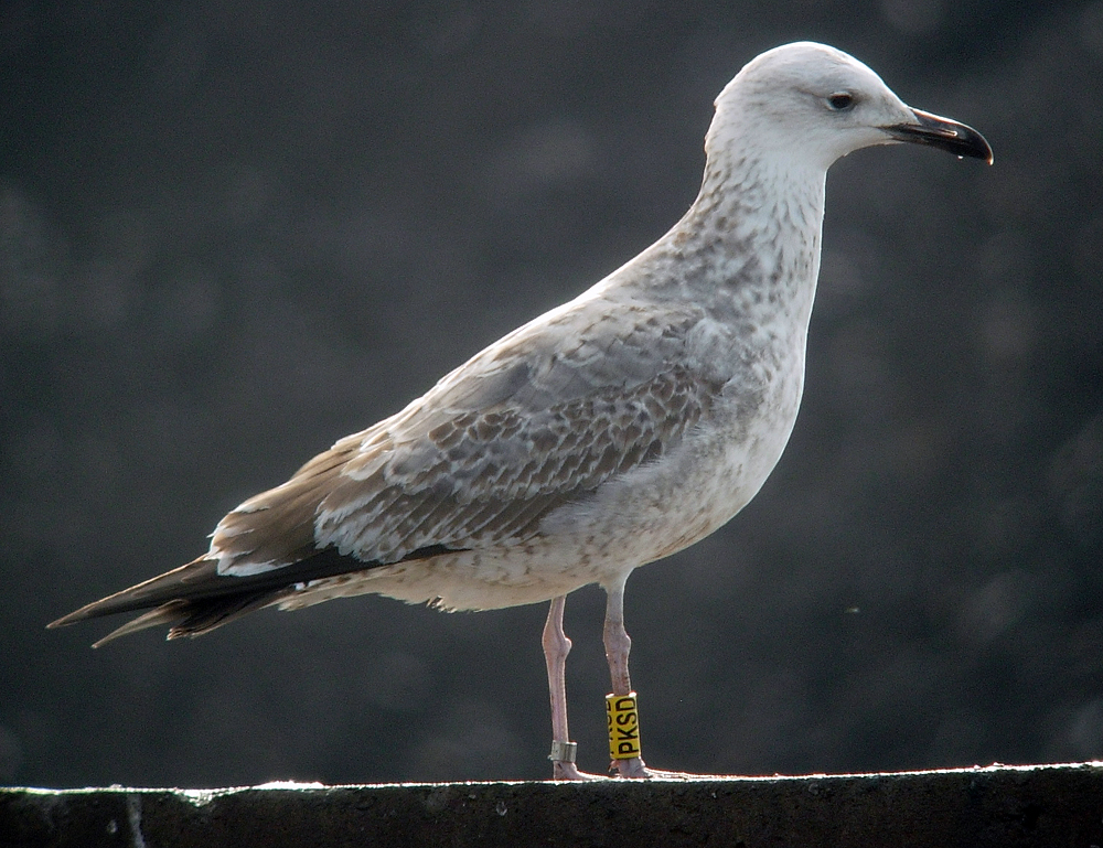 Larus cachinnans 1CY-2CY PKSD August 2012 - June 2013, Minden & Dümmer, Germany. Picture: Armin Deutsch. Yellow PKSD and metal PLG DN-28696; ringed as pullus on May 25 2012 at Kozielno, Paczkow, S-SW Poland, (50°28' N, 16°58' E). Recoveries: