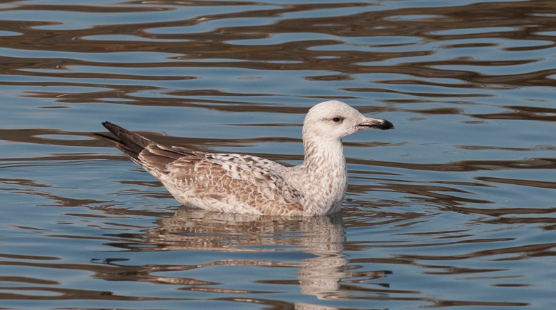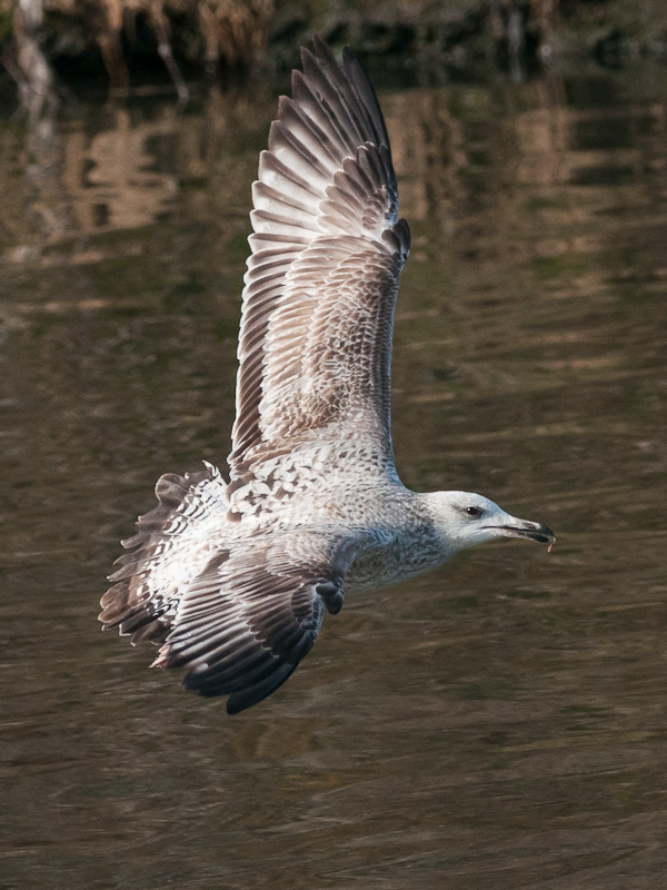Larus cachinnans hybrid? 1CY PKUS December 28 2012, Malonne - Namen, Belgium. Picture: Alain de Broyer. Moult in scaps almost finished, coverts and tertials still juvenile. Pale underwing. Probably all features will just match pure cachinnans, but the head has very extensive fine streaking, not often seen in pure birds in December.