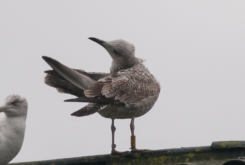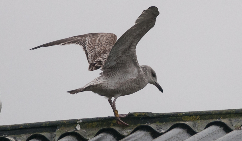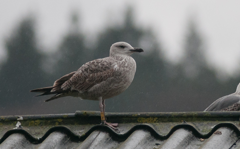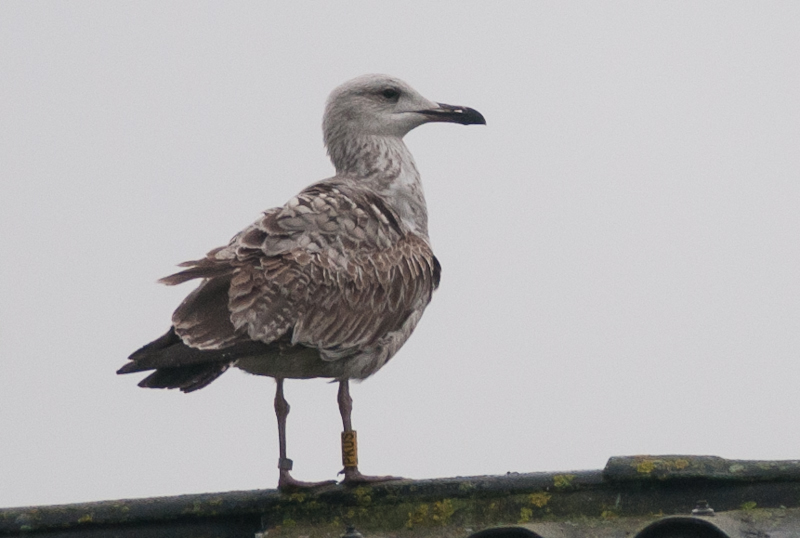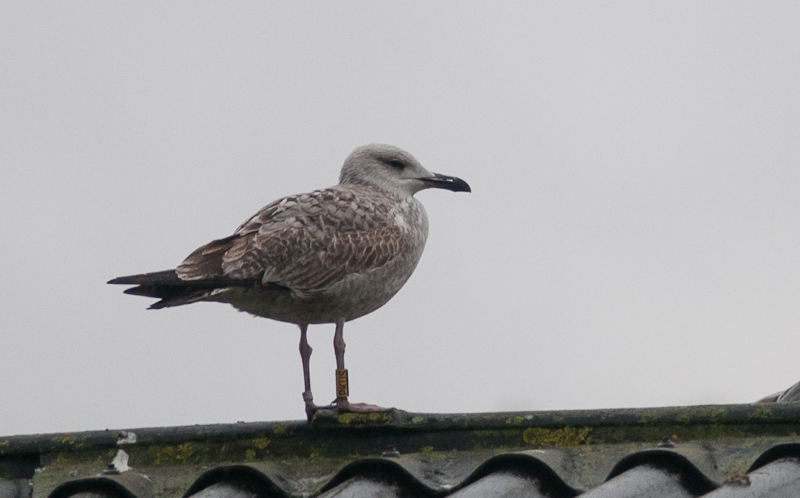 Larus cachinnans hybrid? 1CY-2CY PKUS December 28 2012 & March 06 2013, Malonne - Namen, Belgium. Picture: Alain de Broyer. Yellow PKUS and metal PLG DN-28740; ringed as pullus on May 25 2012 at Kozielno, Paczkow, S-SW Poland, (50°28' N, 16°58' E). Larus cachinnans hybrid? 2CY PKUS March 06 2013, Malonne - Namen, Belgium. Picture: Alain de Broyer.