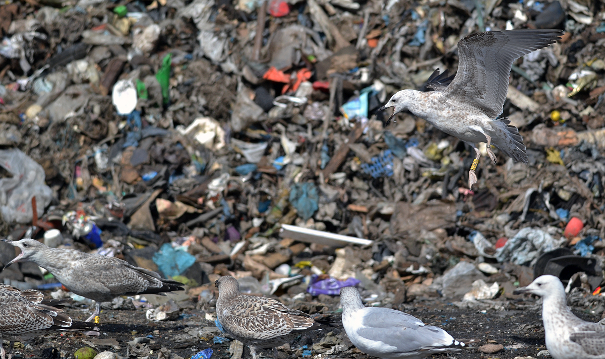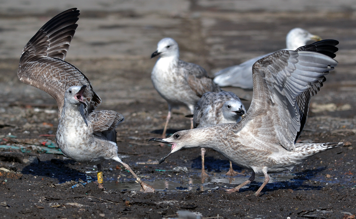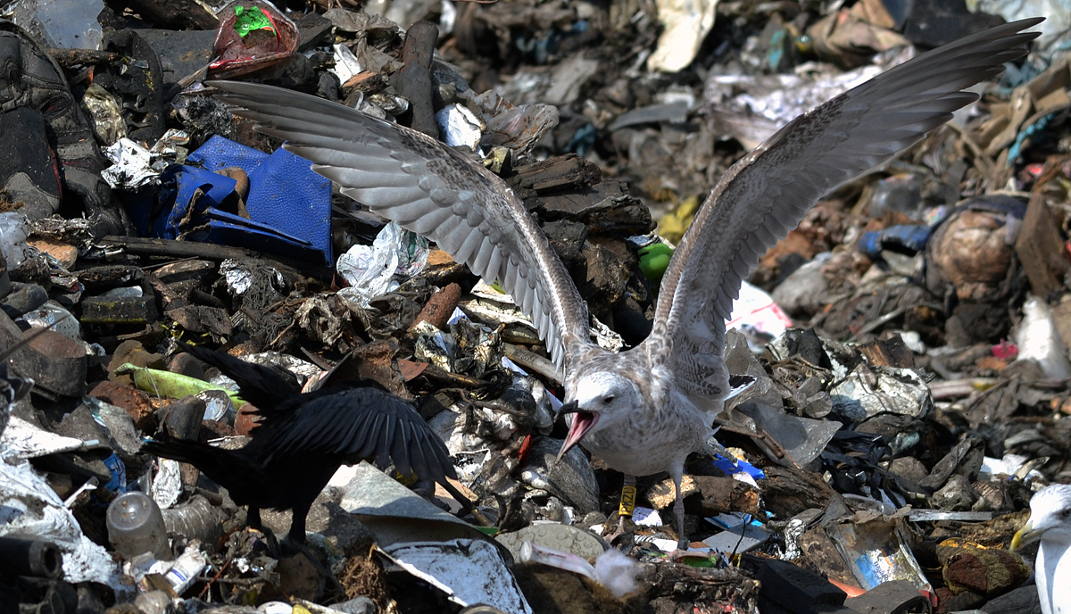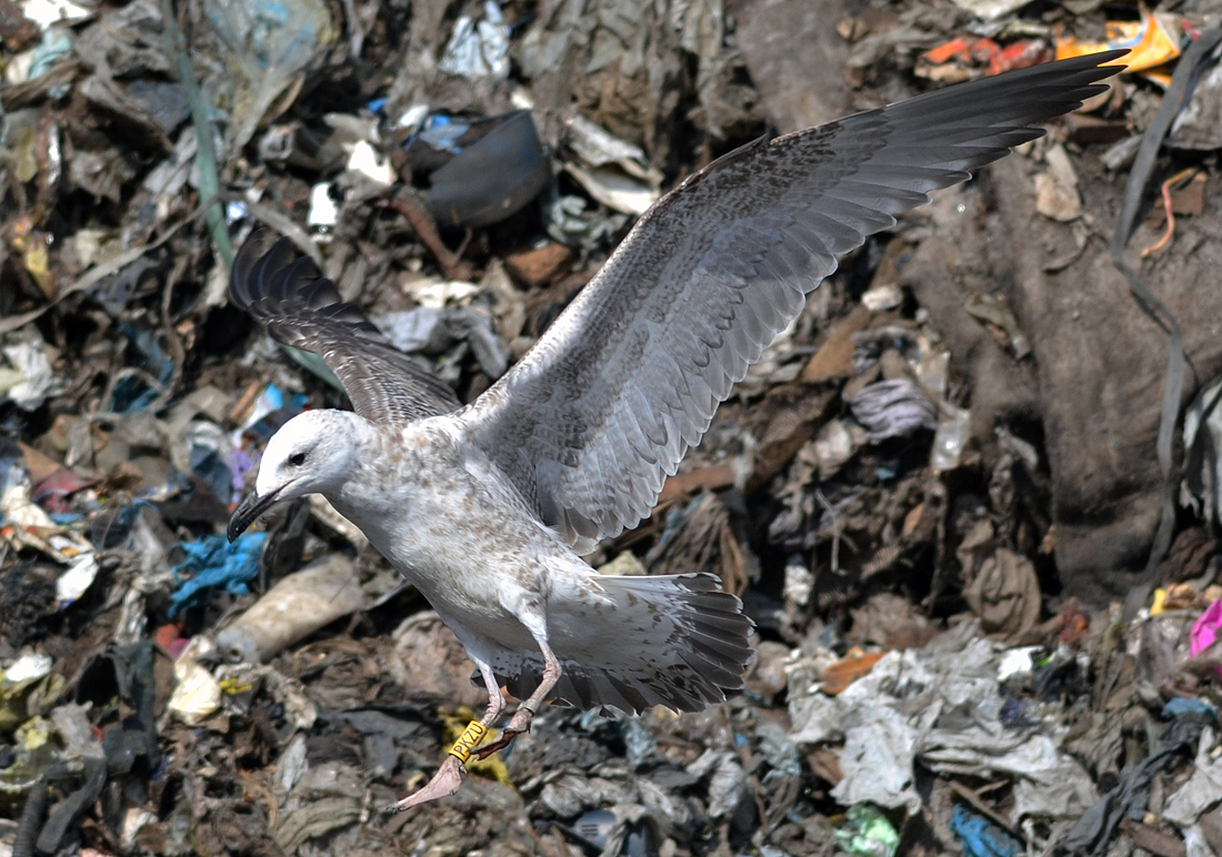 Larus cachinnans 1CY PKZU September 12 - October 04 2012, Deponie Pohlsche Heide - Minden, Germany (52°23'05N, 08°46'45E). Picture: Armin Deutsch. Yellow PKZU and metal PLG DN-28792; ringed as pullus on May 25 2012 at Kozielno, Paczkow, S-SW Poland, (50°28' N, 16°58' E). Recoveries: