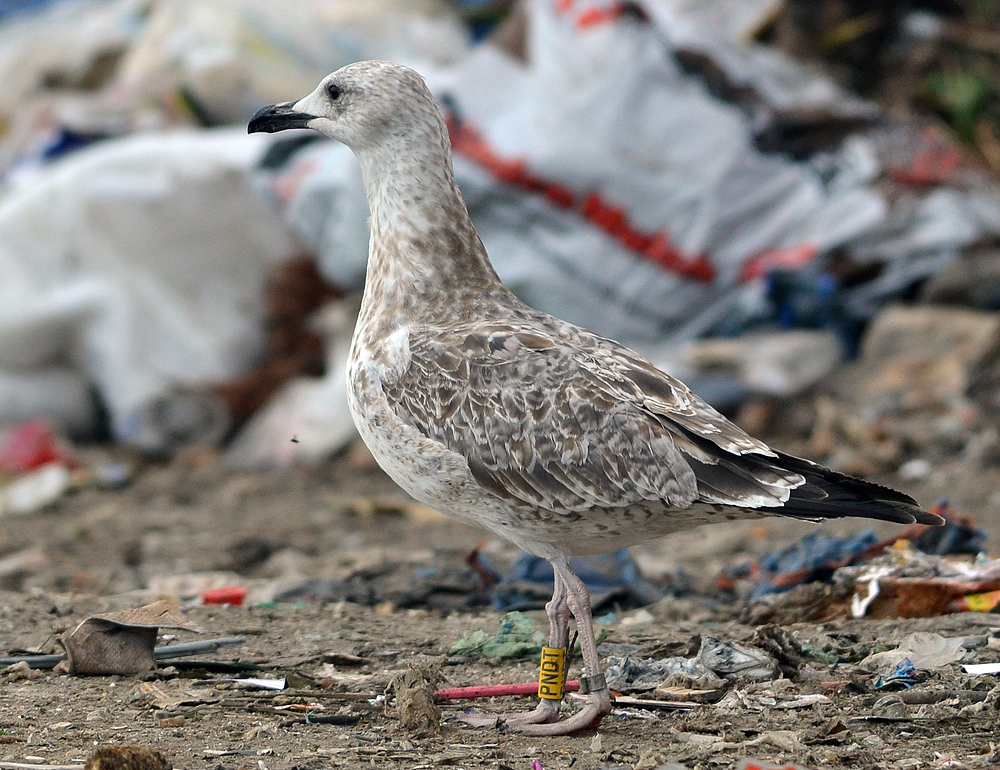 Larus cachinnans 1CY PNDT August 30 2013, Deponie Pohlsche Heide - Minden, Germany (52°23'05N, 08°46'45E). Picture: Armin Deutsch. Yellow PNDT, ringed as pullus on May 24 2013 at Kozielno, Paczkow, S-SW Poland, (50°28' N, 16°58' E). Recoveries: