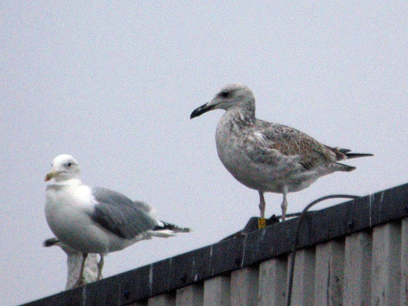 Larus cachinnans 1CY PUDT November 20 2010, Lubna, Poland. Picture: Michal Rycak. Yellow PUDT, probably ringed as pullus on June 05 2010, at Cherkasy Kreminchuk reservoir, Ukraine (49,4 32,15). Difficult angle, but it seems none of the visible coverts have been replaced.