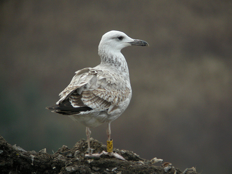Larus cachinnans 1CY PUTA October 28 2010, Lubna, Poland. Picture: Michal Rycak. Yellow PUTA, ringed as pullus on June 05 2010, at Cherkasy Kreminchuk reservoir, Ukraine (49,4 32,15). Scapulars replaced. All coverts and tertials stll juvenile.