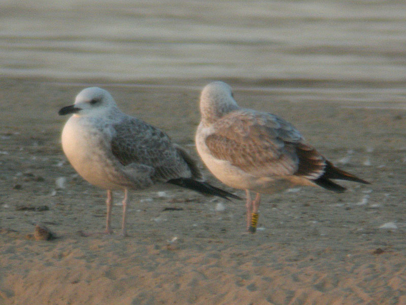 Larus cachinnans 1CY PUTK November & December 2010, Poland & Hungary. Picture: Michal Rycak & Gabor Papp. Yellow PUTK and metal UKK L-009680, ringed as pullus on June 05 2010, at Cherkasy Kreminchuk reservoir, Ukraine (49,4 32,15). below: cachinnans 1CY PUTK December 10 2010, Hely Naszály Ferencmajor Komárom-Esztergom, Hungary. Picture: Gabor Papp. Several coverts replaced. Very pale on underparts and head.