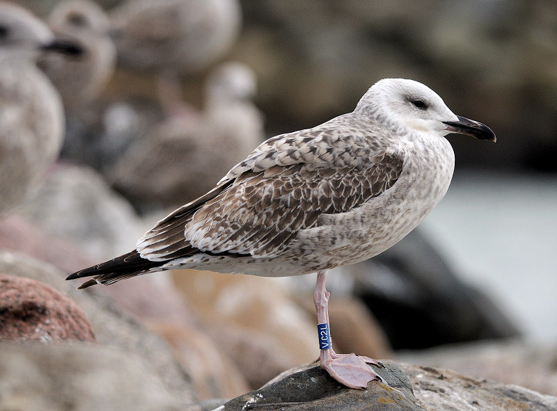 Larus cachinnans VC2L November 2009 & June 2010, Rødvig-Stevns, Sjælland, Denmark. Picture: Lars Krogh. Ringed as 1cy female by Kjeld T Pedersen at Rodvig Havn Denamrk, on November 15 2009. below: 1cy VC2L November 15 2009, Rødvig-Stevns, Sjælland, Denmark. Picture: Lars Krogh. Coverts and tertials juvenile.