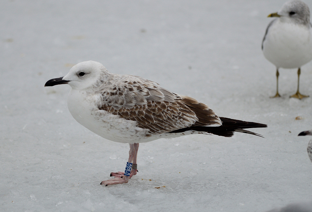 Larus cachinnans 1cy VP9Y December 12 2012, Damhus Sø -København, Denmark. Picture: Lars Krogh. Ringed in Denmark by Kjeld T Pedersen. Coverts and tertials juvenile. |