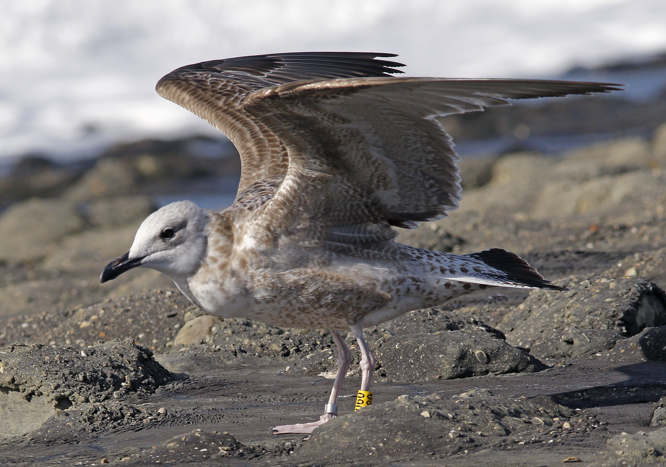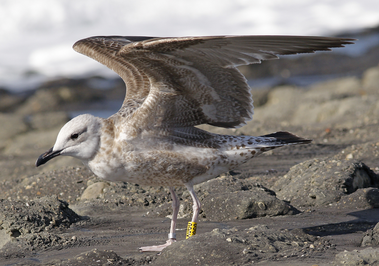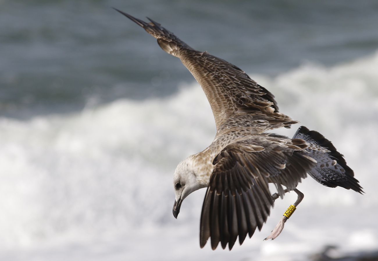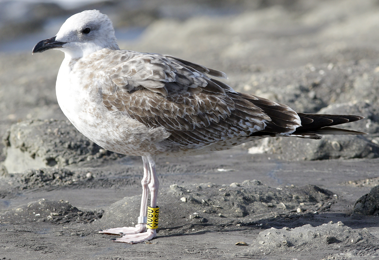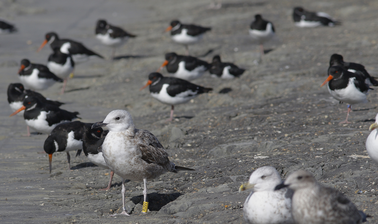 Larus cachinnans X060 1CY, September 30 2016, Westkapelle, the Netherlands. Picture: Mars Muusse. Yellow X060 and metal DEH Hiddensee EA-204060 ringed as pullus on June 07 2016 in a mixed colony of Gräbendorfer See, eastern Duitsland (51,42N 14,06E). Female.