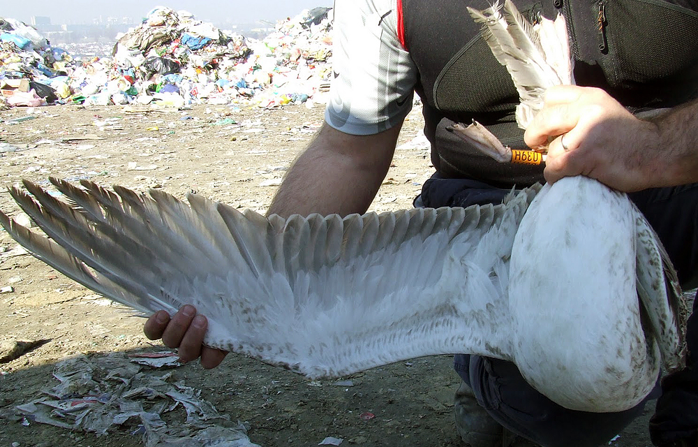 Larus cachinnans 2CY 039H February 06 2011, Jakuševec-Zagreb, Croatia. Picture: ringing team Luka Jurinovic. 1st winter, ringed at Zagreb landfill. Together with orange 023H, L. michahellis 3CY (2nd winter).
