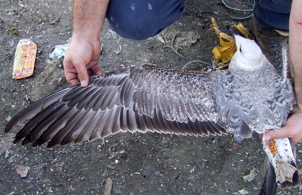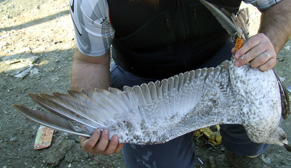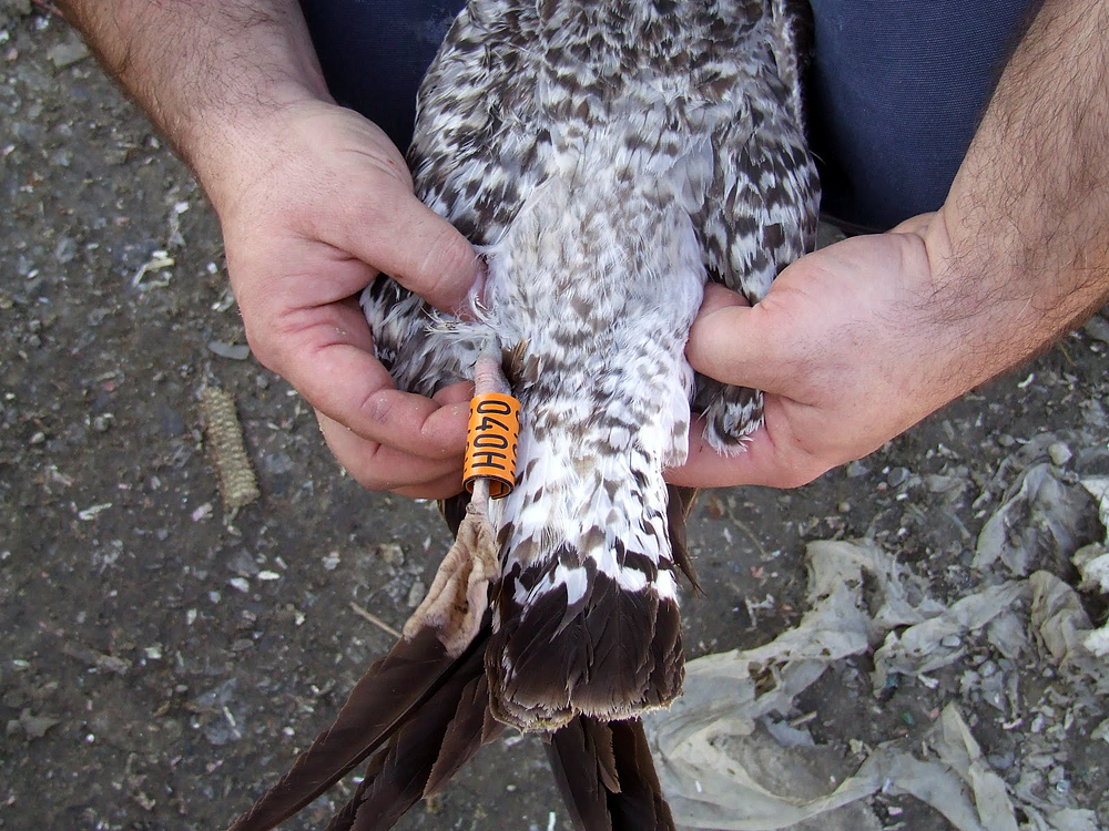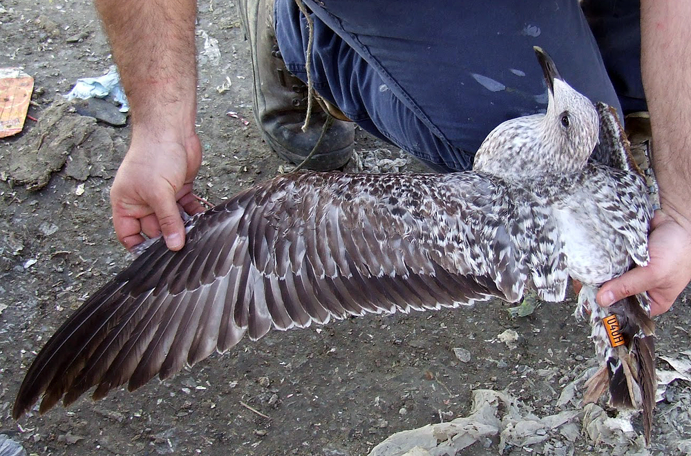 Larus cachinnans 2CY 043H February 06 2011, Jakuševec-Zagreb, Croatia. Picture: ringing team Luka Jurinovic. 1st winter, ringed at Zagreb landfill. Together with orange 023H, L. michahellis 3CY (2nd winter).